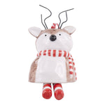 Elevate your holiday décor with this adorable and jolly reindeer ornament, featuring hand-painted details and playful dangling legs for an extra touch of charm! Dressed in a cozy red and white scarf and topped with whimsical wire antlers, this reindeer is ready to bring festive cheer to your tree.