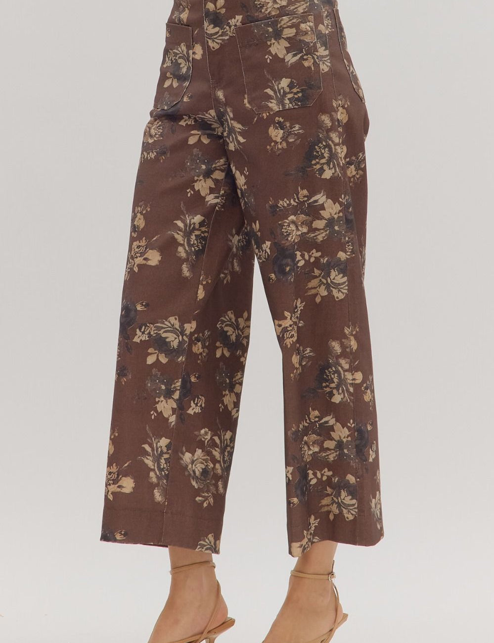 Curvy Brown Floral Mid-Rise Ankle Pants