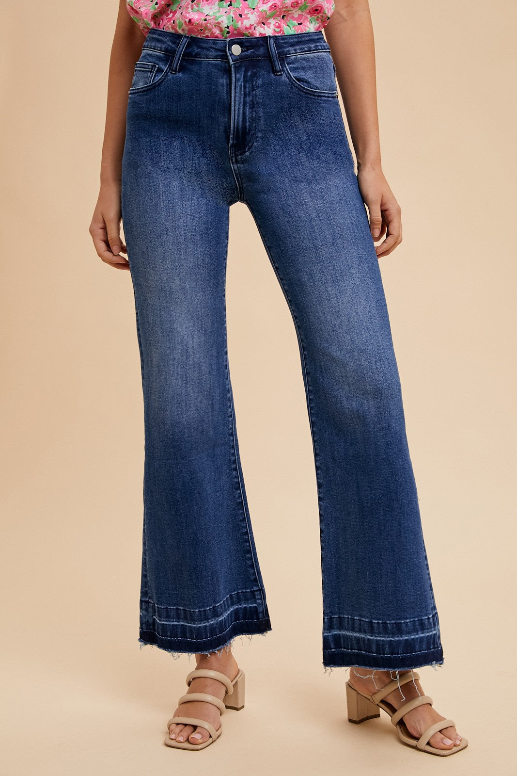 Get ready to turn heads in our Comfort Stretch Full-Length Flare Jeans! Made with soft, stretched denim, these jeans feature a trendy release hemline and a flattering high-rise fit. The wide flare leg and classic 30" inseam give a vintage-inspired look, perfect for any occasion. Designed with a YKK zipper closure and pockets for convenience, these jeans combine style and comfort effortlessly