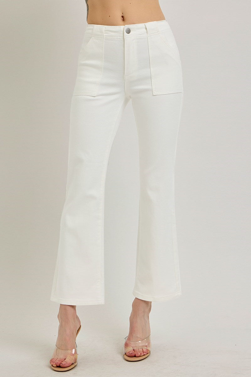 Risen Curvy Fit High Rise White Utility Flare Pants