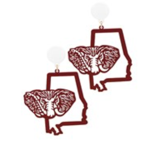 Burgundy and White Elephant and State Earring