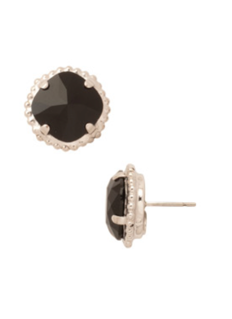 All around allure; the Cushion-Cut Solitaire Stud Earring features a rounded-edge, cushion cut stone that is encircled by a vintage inspired decorative, edged border. A post backing ensures comfortable, everyday wear.