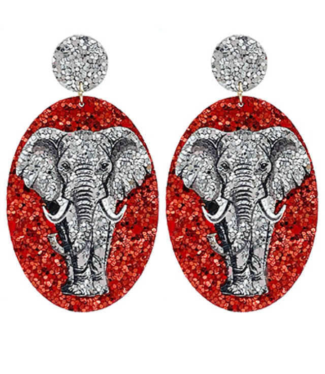 Show your spirited style with these "GAME DAY" Glitter Elephant Oval Earrings. Crafted from faux leather and acrylic, they offer a lightweight yet durable accessory perfect for long events. Their 2 3/4-inch length ensures striking visibility, while the secure post design guarantees comfortable wear. Elevate your game day look with a playful touch that celebrates your unique enthusiasm.