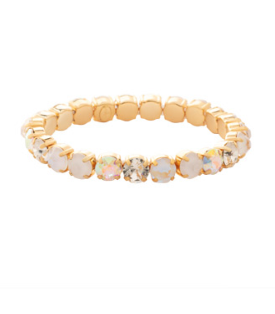 A modern take on a classic style, the Sienna Stretch Bracelet features a line of crystals on a sturdy jewelers' filament, stretching to fit most wrists comfortably, without the hassle of a clasp! (7 inches in diameter, fits average wrist sizes)
