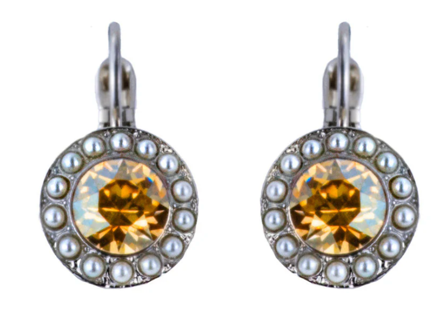 Large Halo Leverback Earrings "Butter Pecan" - Rhodium