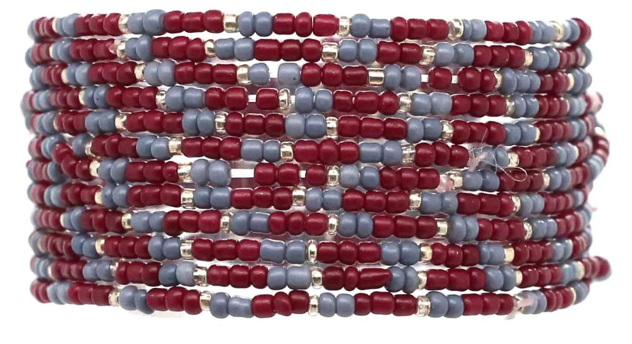 Multi Strand Stretch Bracelet Maroon and Grey Gameday Bracelets