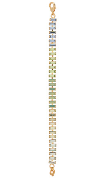 The Bianca Tennis Bracelet features a line of baby baguette-cut crystals with an adjustable chain, and secured with a lobster claw clasp.