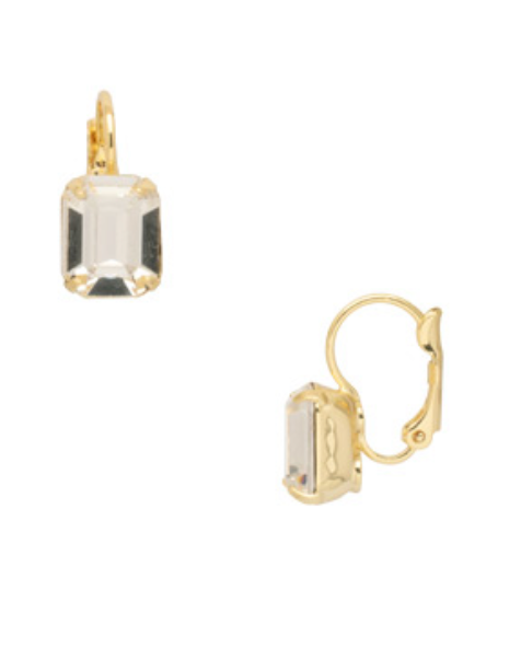 The Octavia Dangle Earrings feature a small emerald cut crystal dangling from a lever-back French wire.