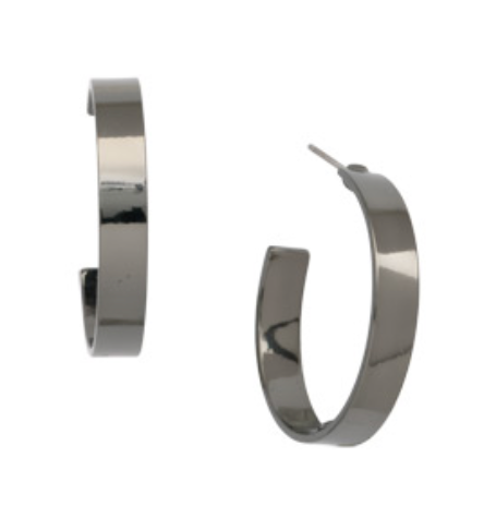 The Bex Hoop Earrings feature a flat metal hoop on a post.