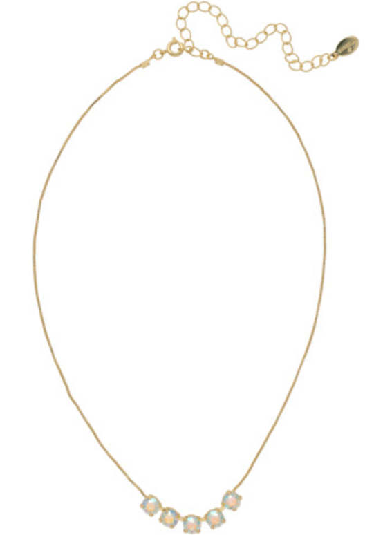 The Shaughna Tennis Necklace features five crystals on a delicate adjustable chain
