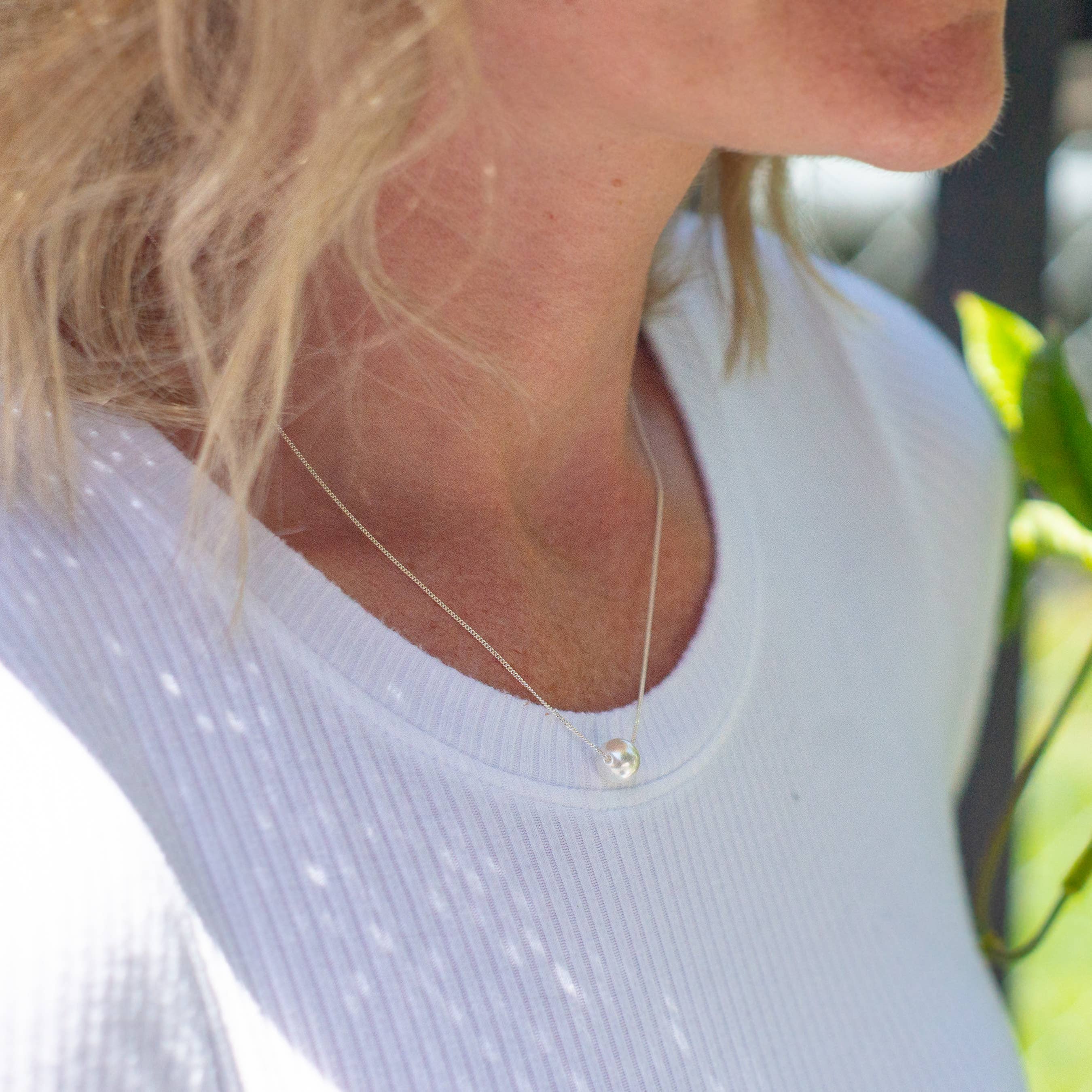 Simple, timeless and elegant, the new floating White Pearl Blessing necklace in Sterling Silver is the perfect accompanying piece to your Blessing Bracelet.