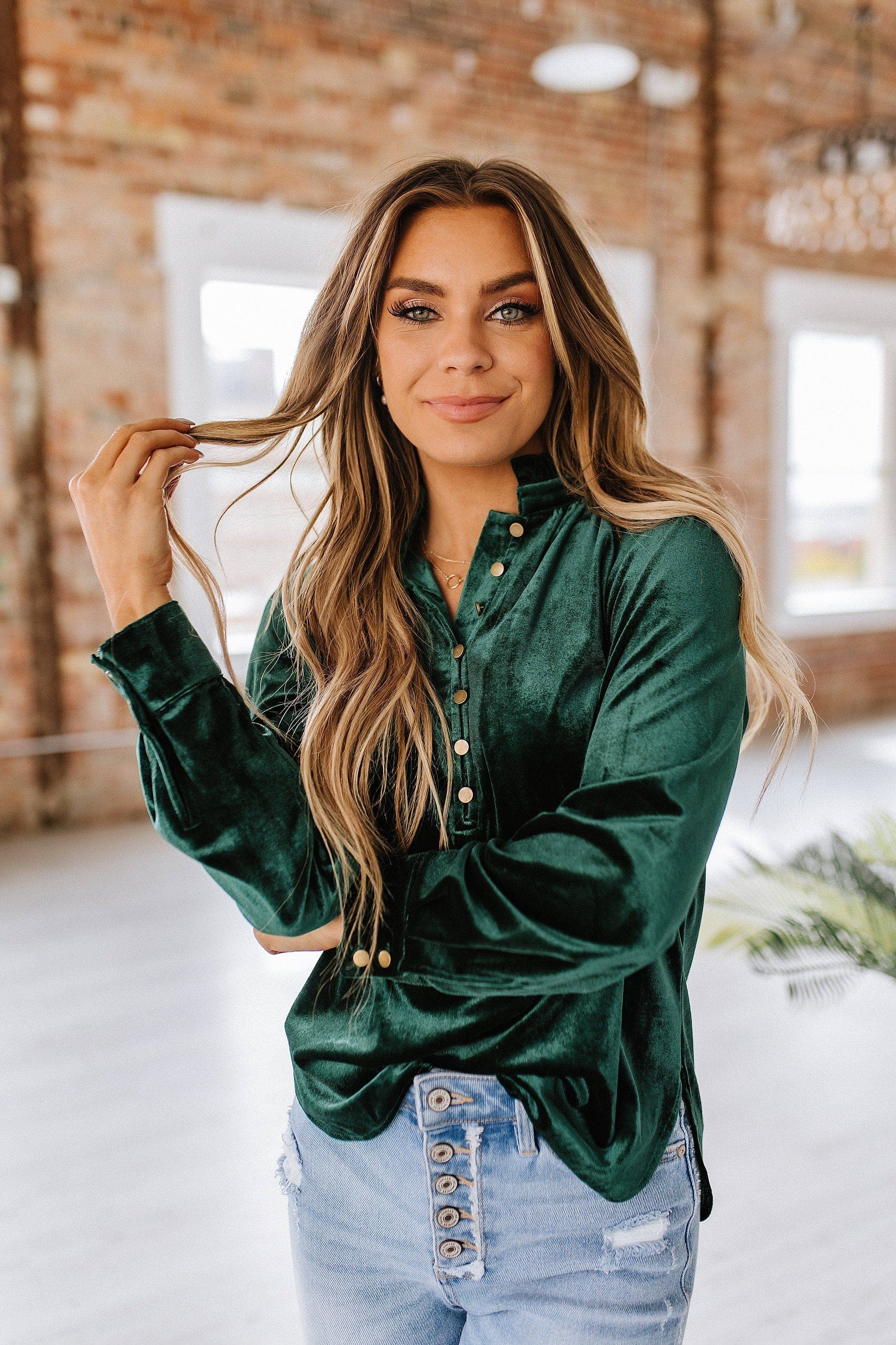Look amazing in the Marjorie Long Sleeve Velvet Blouse! Made of luxurious velvet fabric, this stunning blouse features a button neck and long sleeves for an elegant look. Perfect for any occasion, you'll be sure to stand out in this unforgettable blouse - make a statement today!
