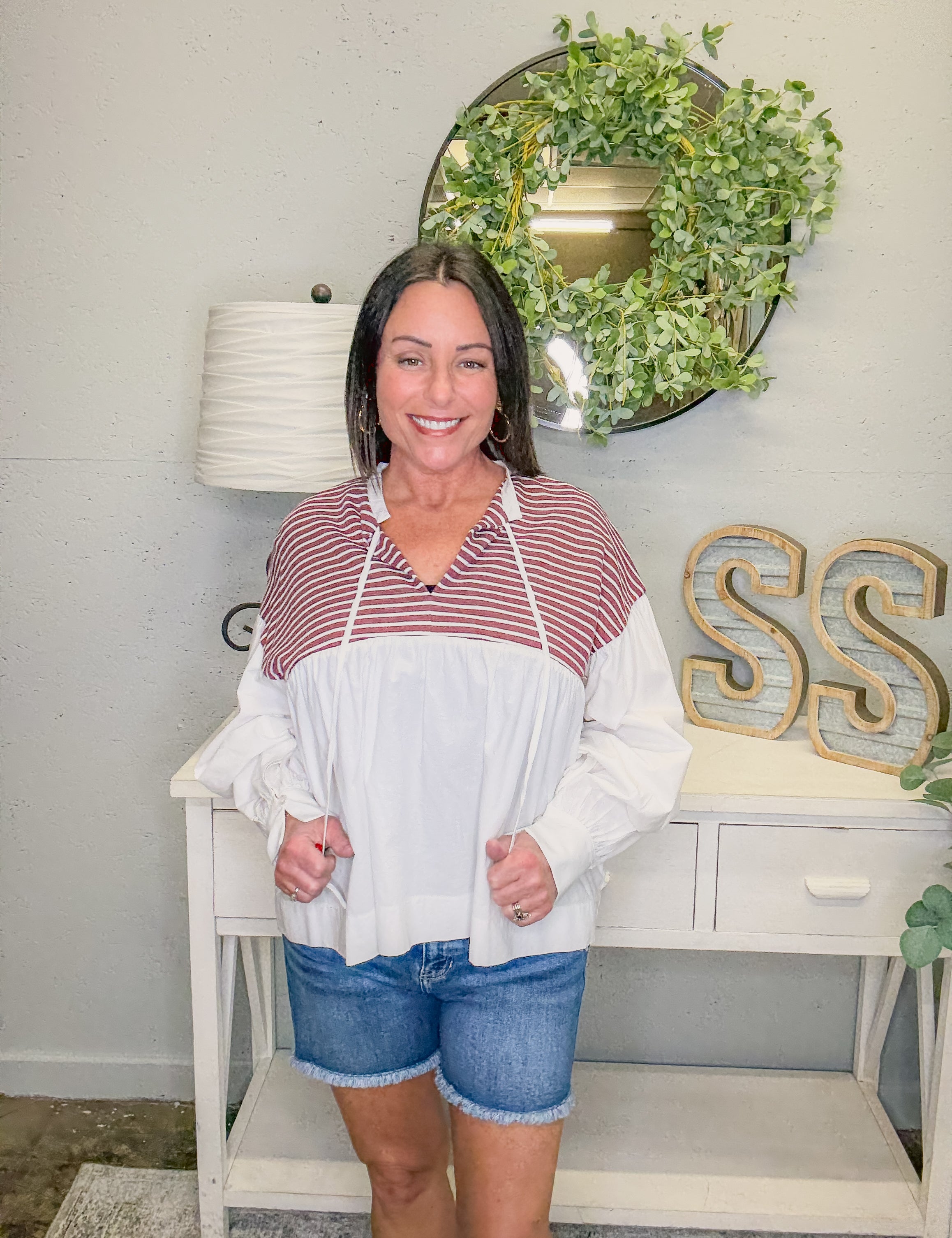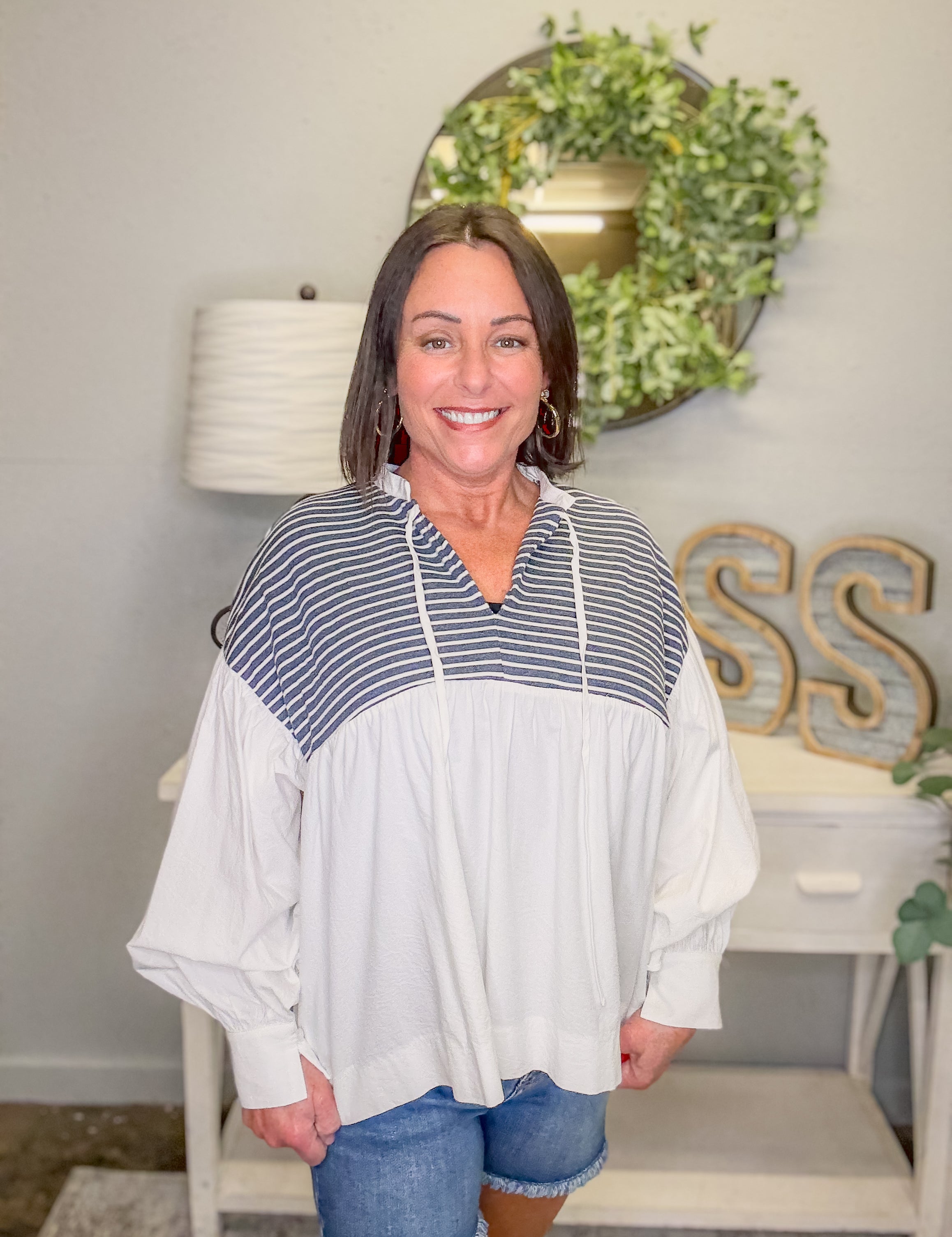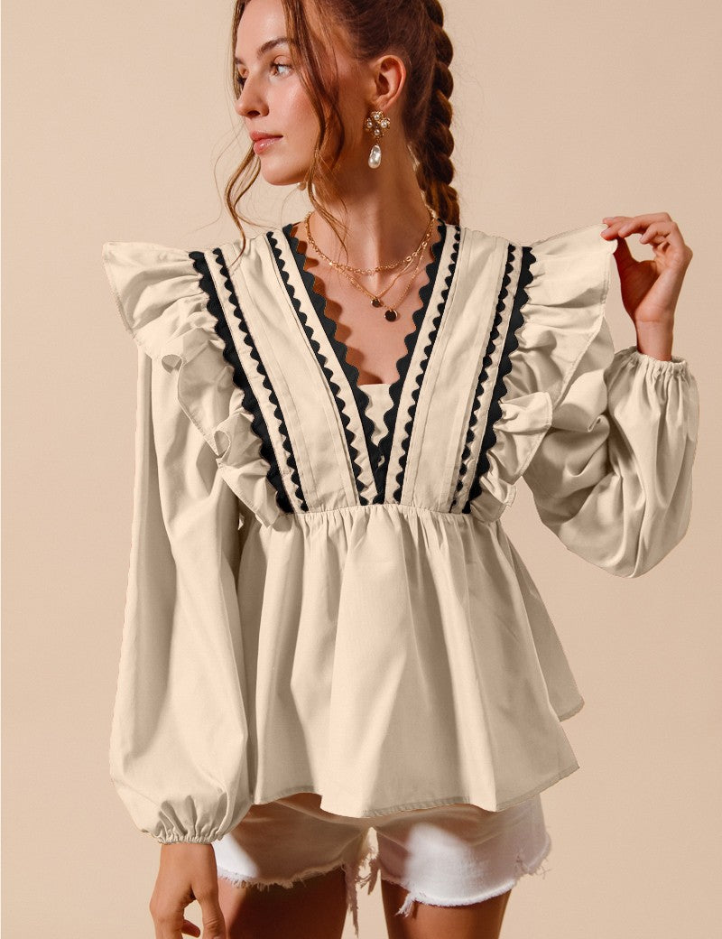 Polka Dot Ruffle Puff Sleeve Blouse – Mocha Cream