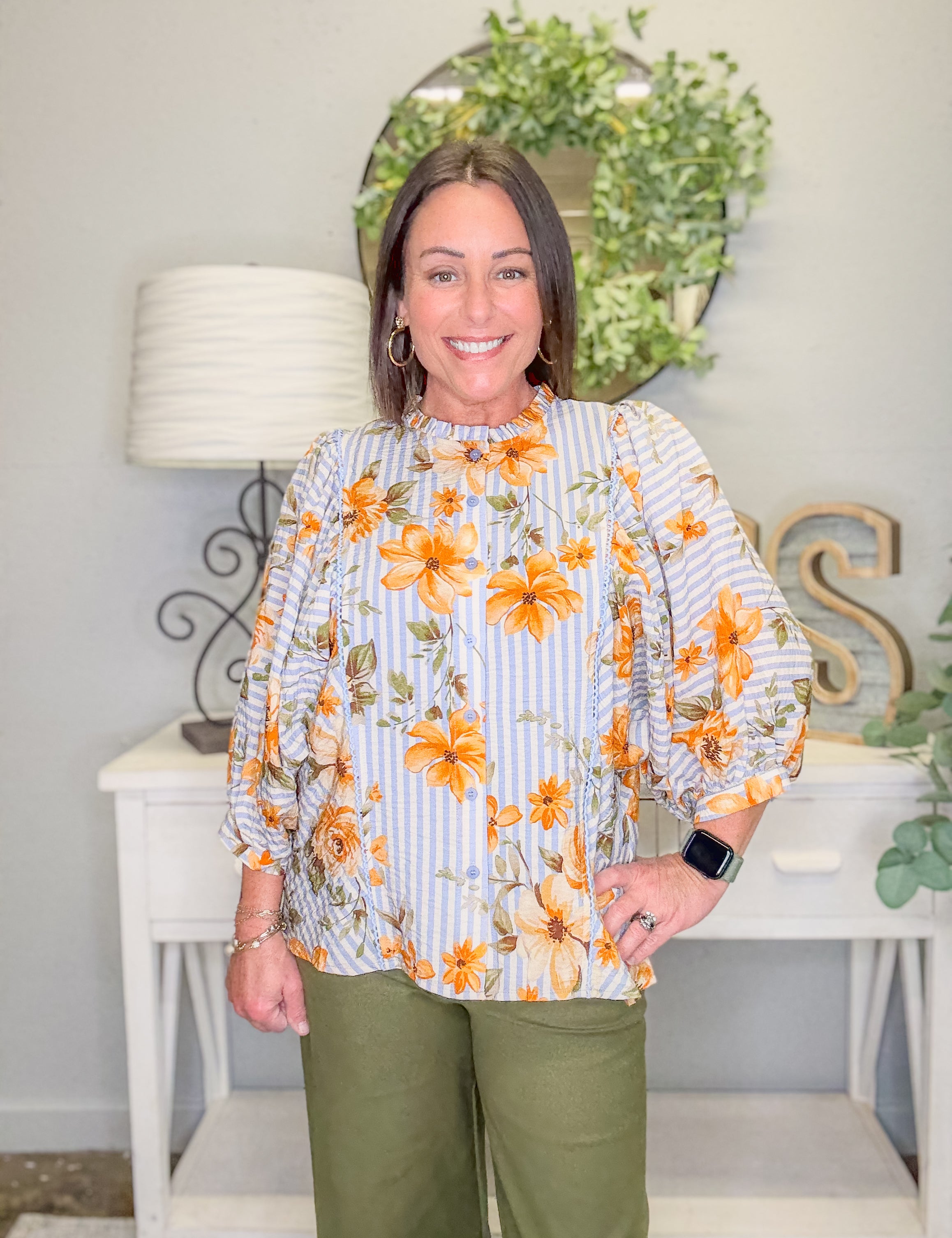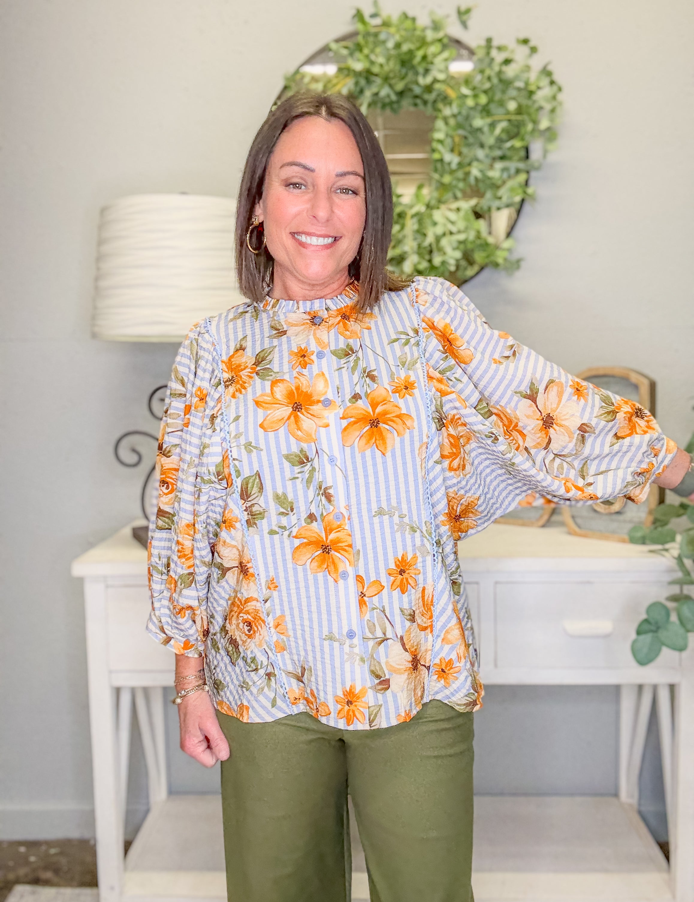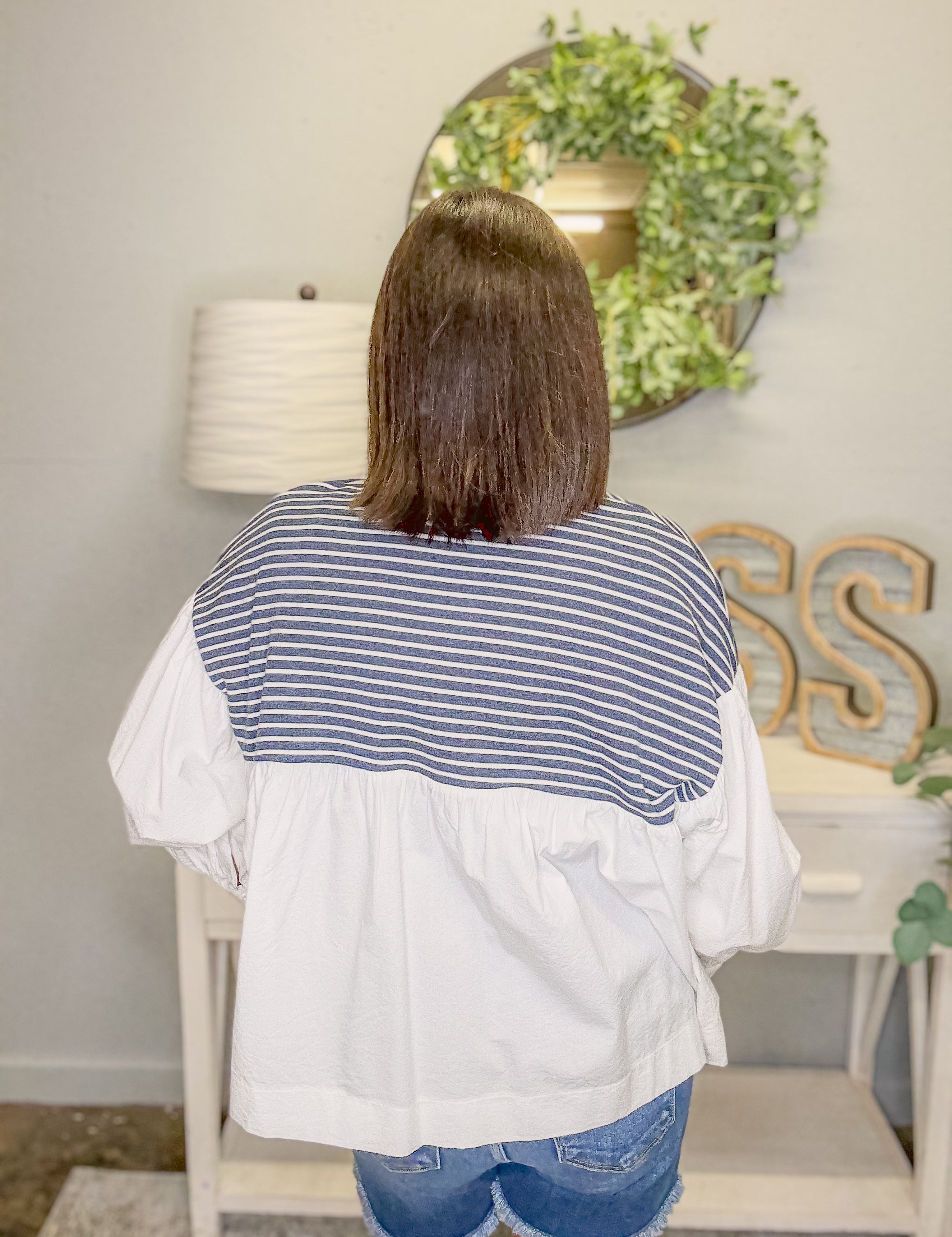 Polka Dot Ruffle Puff Sleeve Blouse – Mocha Cream
