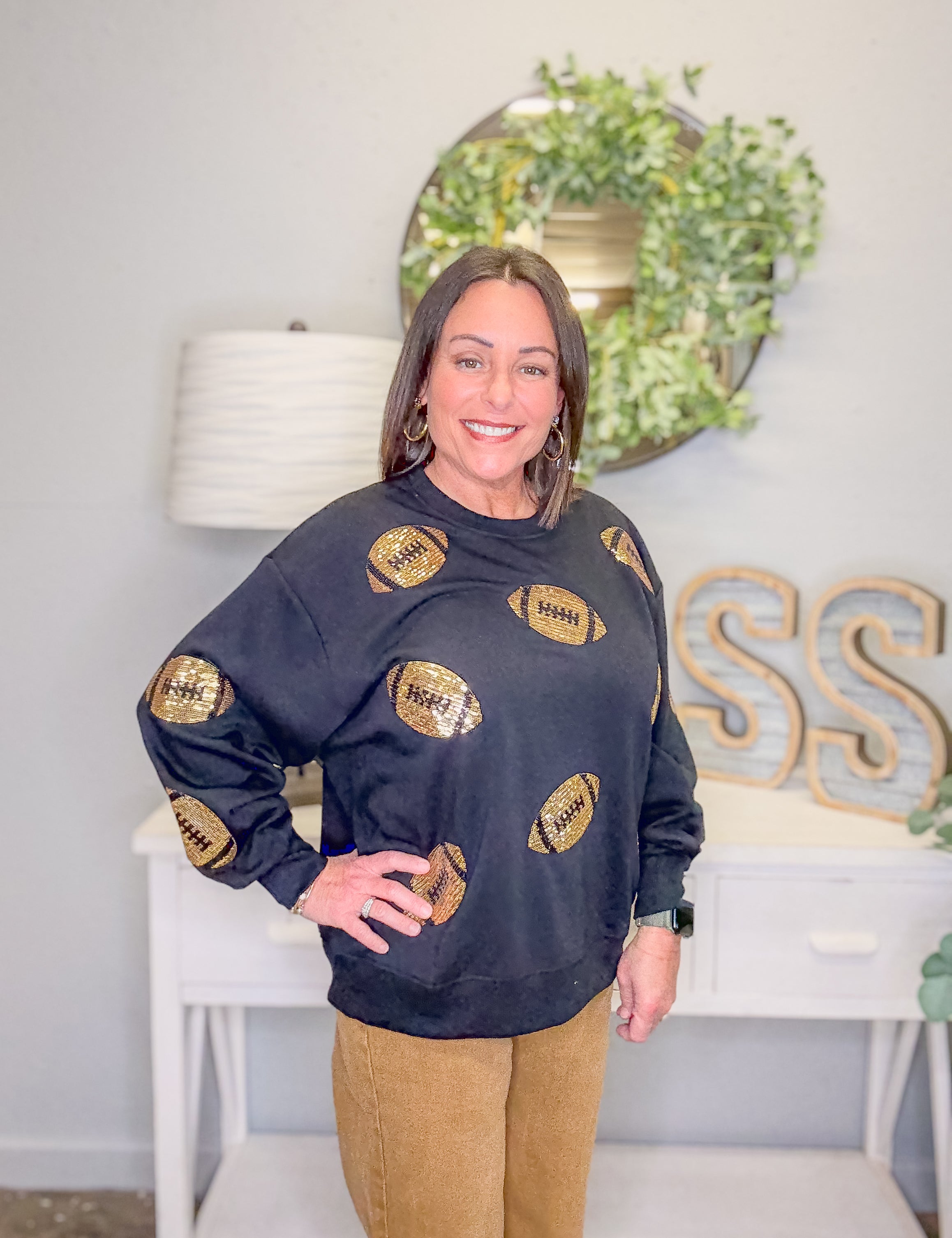Sarah Sequin Football Sweatshirt – Black & Gold