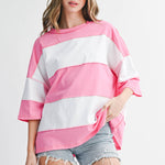 Pink & White Striped Relaxed Tee