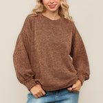 Cozy, chic, and effortlessly stylish 🤎 Our Camel Two-Tone Jacquard Sweater is the perfect oversized knit for fall and winter. Designed with a classic round neckline, drop shoulders, and beautiful bubble long sleeves, this top delivers that relaxed, slouchy fit everyone loves while still looking put-together.