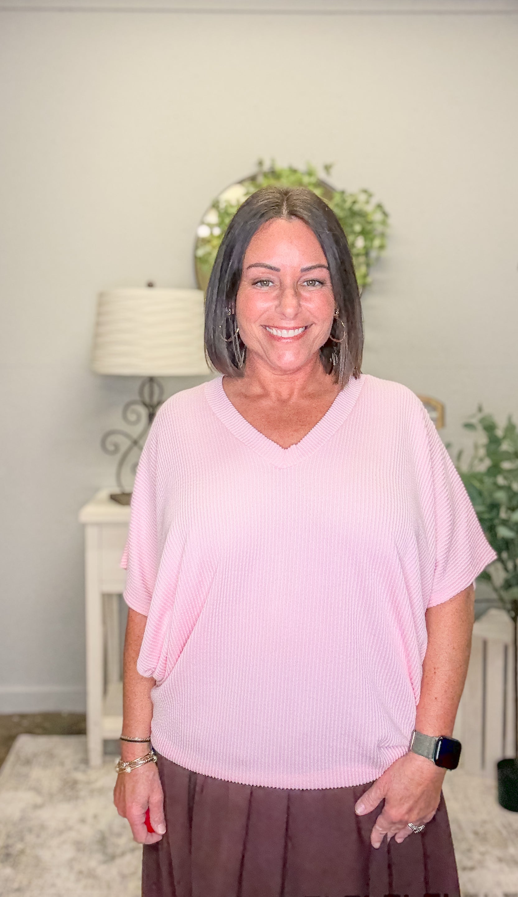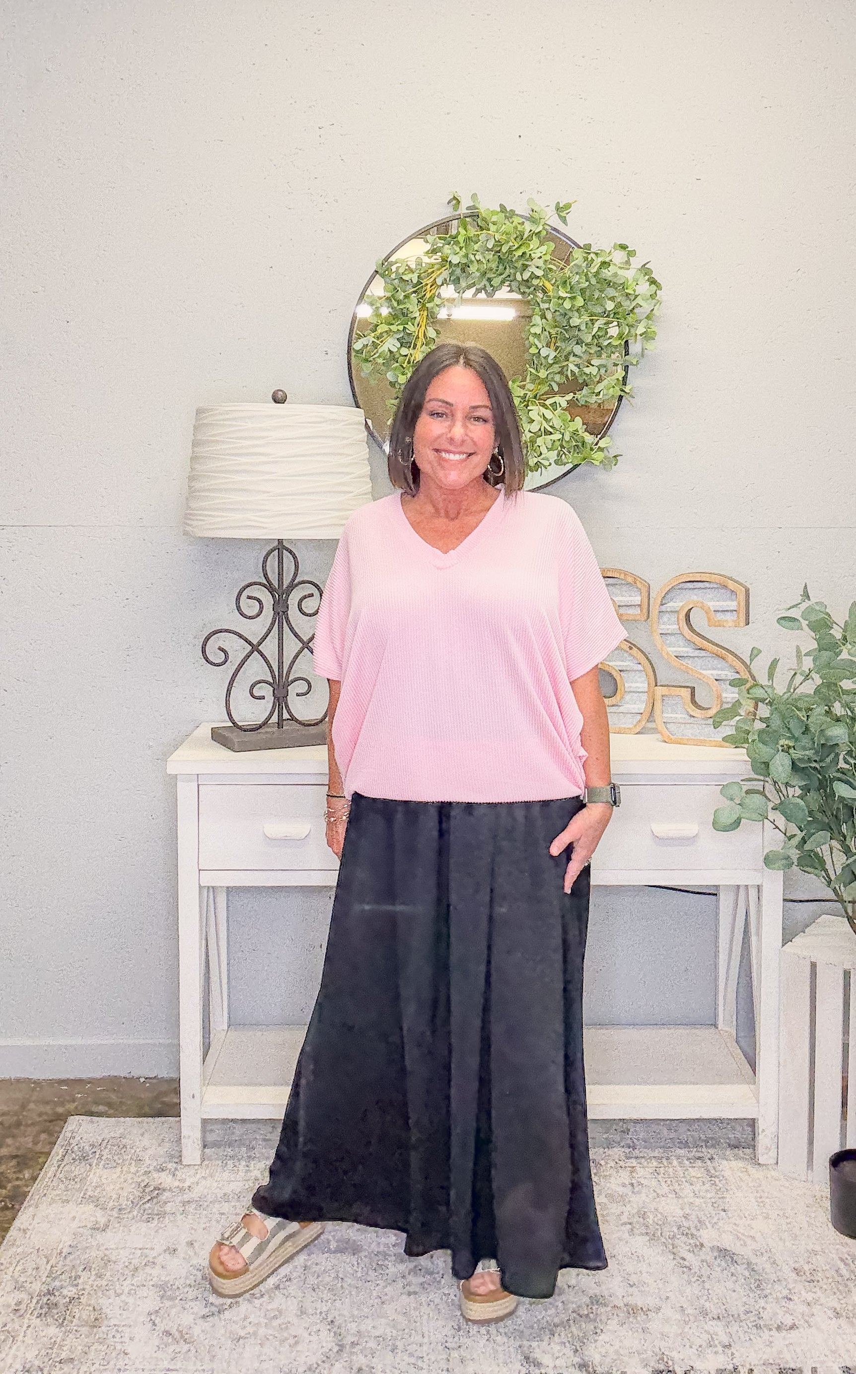 Pair with high-rise jeans and sandals for a casual day out, or tuck it into a midi skirt and throw on some slides for a cute coffee date look. Layer it under a denim jacket for those cooler nights—it’s as versatile as it is comfy!