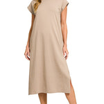 Round Neck Short Sleeve Midi Dress – Ash Mocha