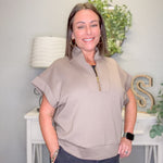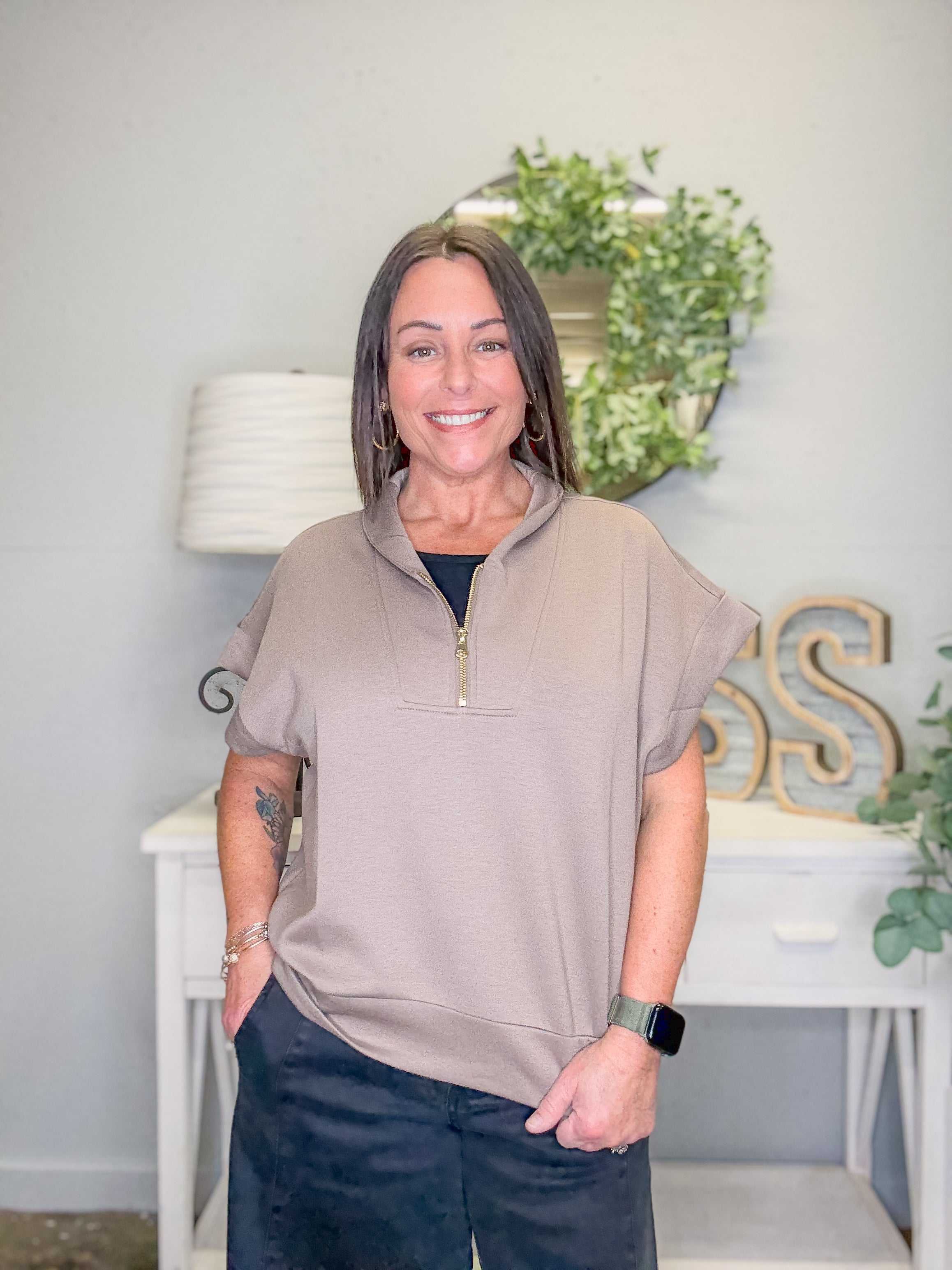 Sporty meets chic in our Scuba High Neck Half Zip Vest. Designed in a rich cocoa hue, this sleeveless vest features a structured scuba fabric that holds its shape while keeping you comfortable. The high neckline with gold zip detail adds a touch of polish, making it easy to style casual or elevated.
