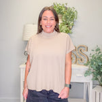 Viscose Mock Neck Short Sleeve Boxy Sweater – Light Mocha