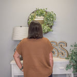 Viscose Mock Neck Short Sleeve Boxy Sweater – Deep Camel