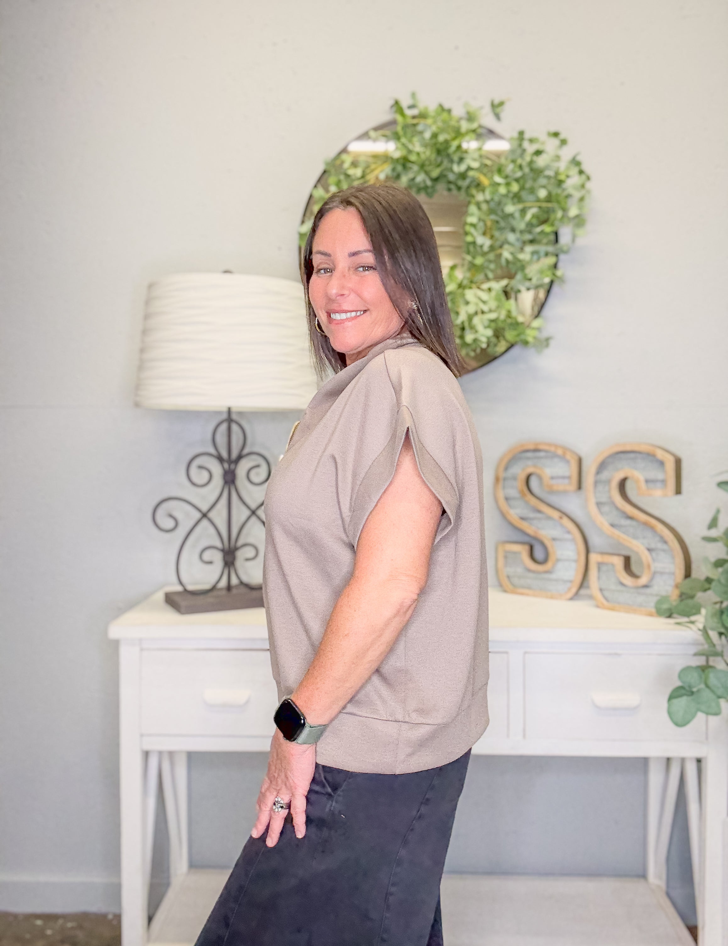 Viscose Mock Neck Short Sleeve Boxy Sweater – Light Mocha