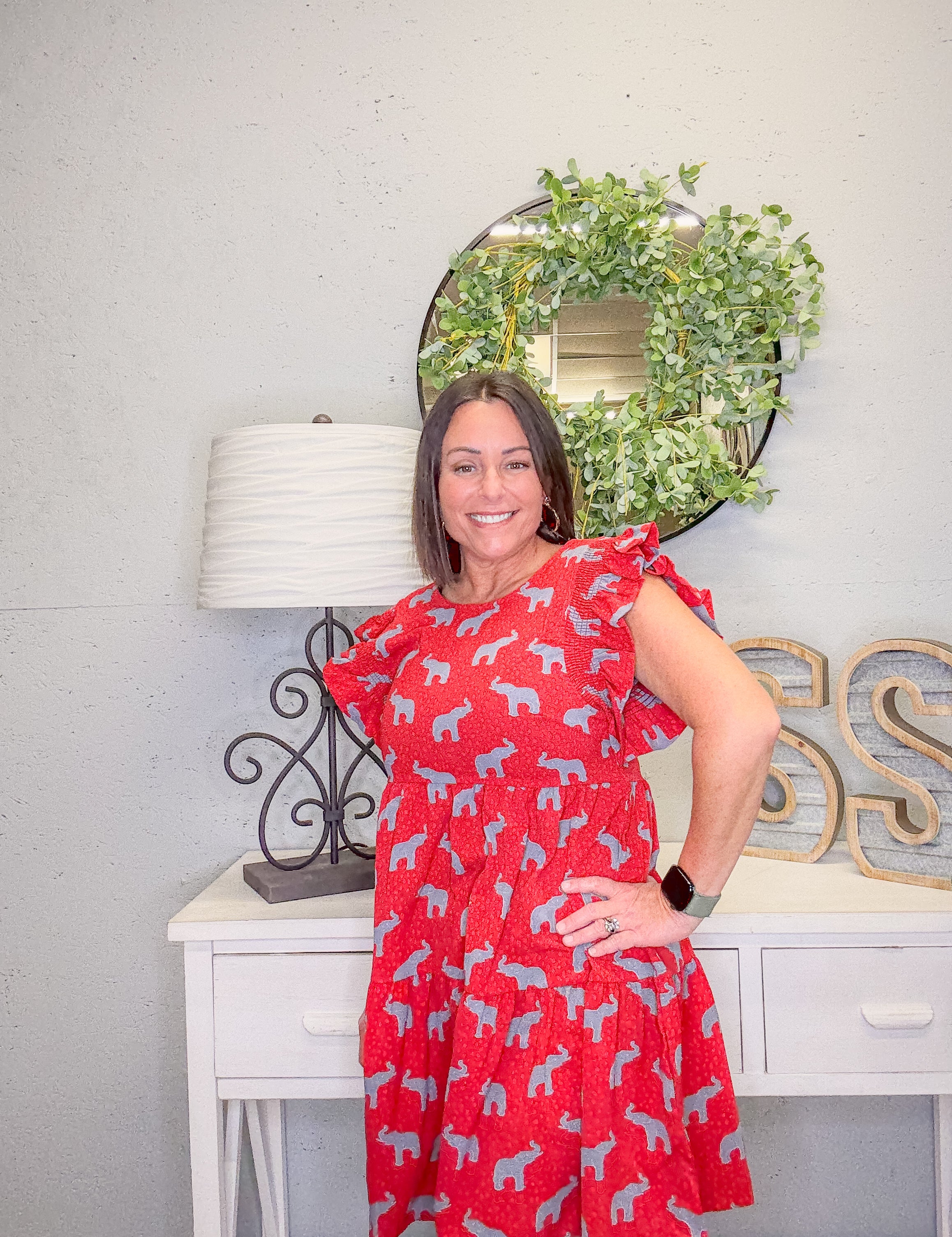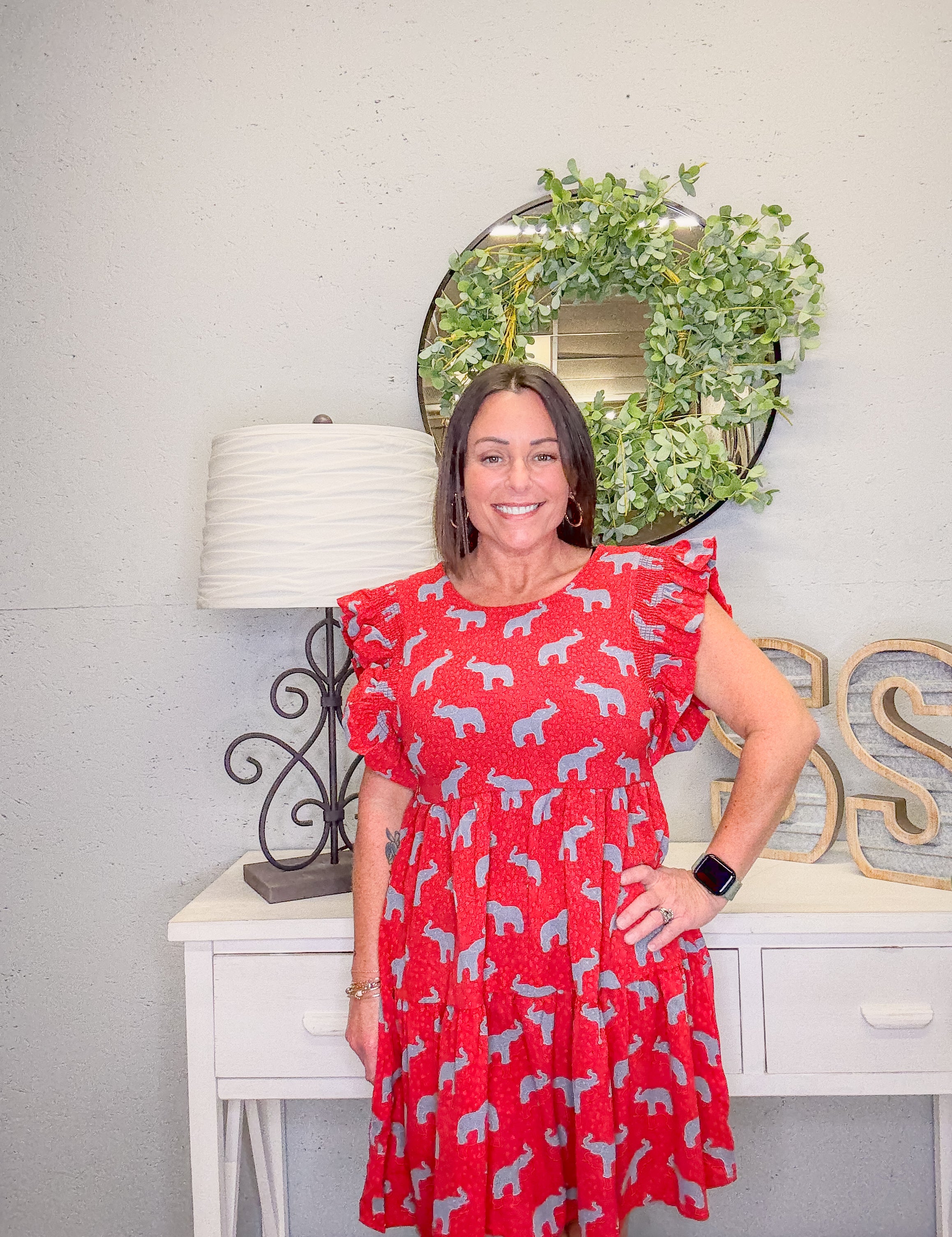 The Everly Crimson Elephant Dress