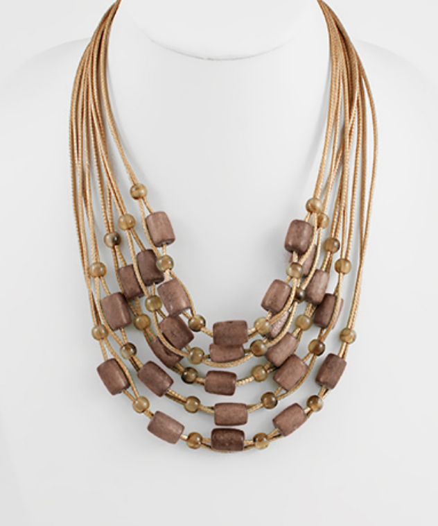 Add modern, earthy style to your look with this 5-layer cord necklace, featuring smooth wooden cylinder stations for a bold yet natural statement. Lightweight and easy to style, it pairs perfectly with both casual and elevated outfits.