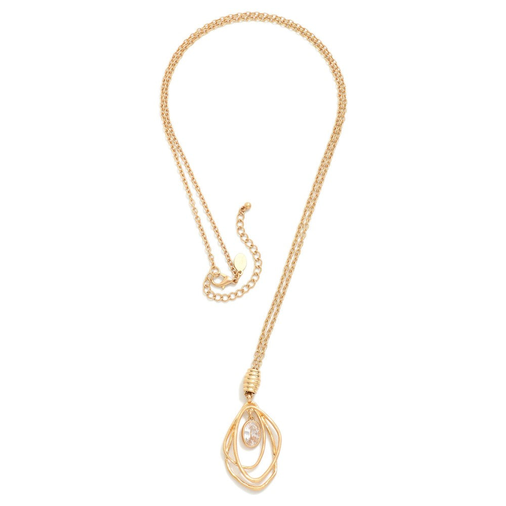 Long Gold Chain Necklace with Layered Geometric Pendant