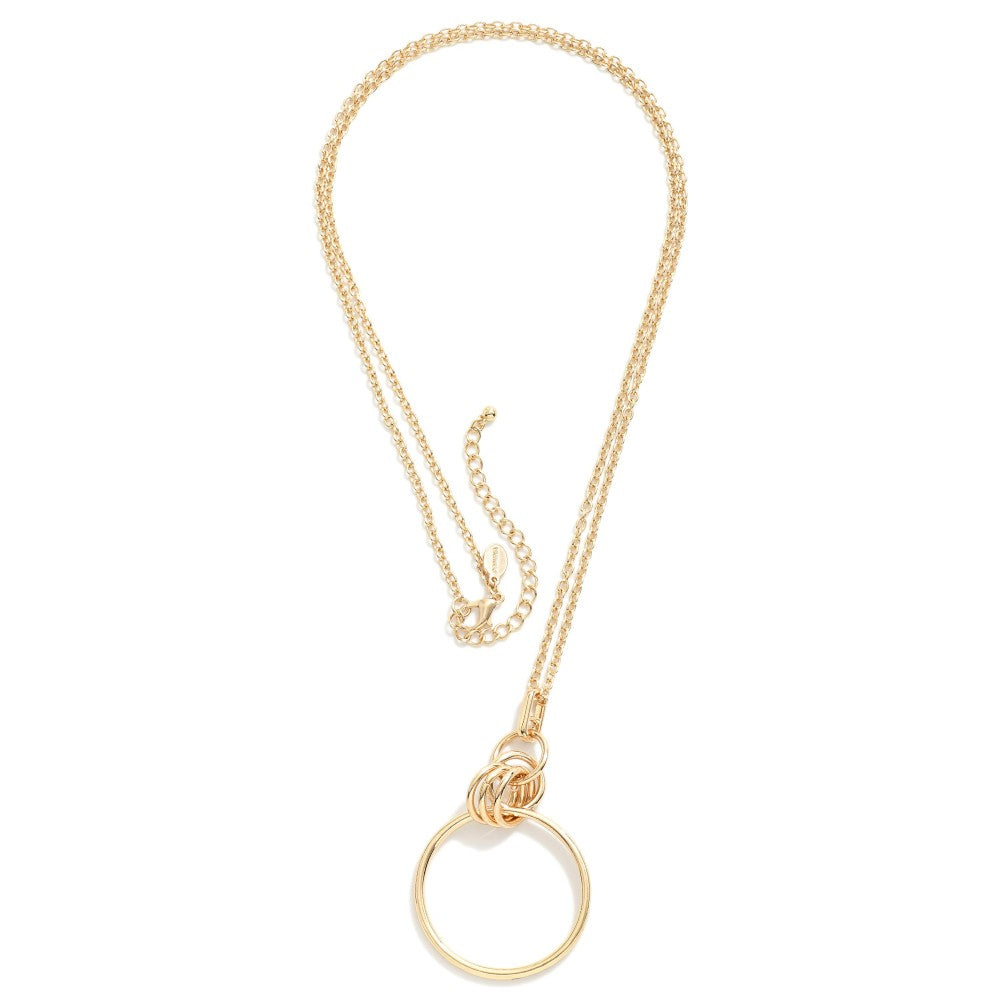 Long Chain Link Necklace Featuring Linked Hoops Pendant