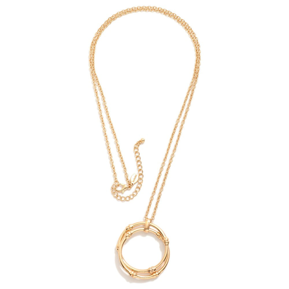 Gold Double Bamboo Hoop Pendant Necklace