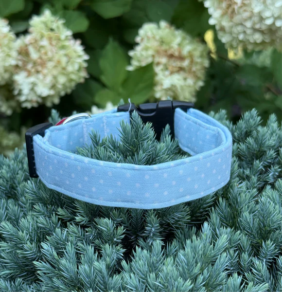 Small Light Blue Polka Dot Limited Edition Dog Collar