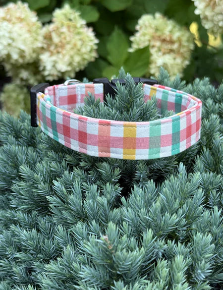 Medium Coral and Teal Plaid Limited Edition Dog Collar