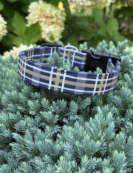 Large Coral and Teal Plaid Limited Edition Dog Collar