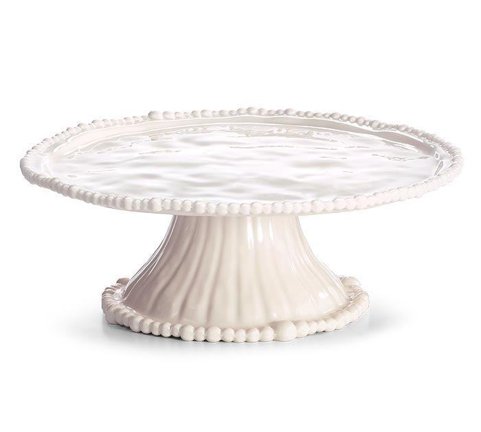 Cream Melamine Cake Plate – Pearl Beaded Edge, Detachable Base