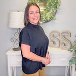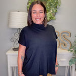 Viscose Mock Neck Short Sleeve Boxy Sweater – Black