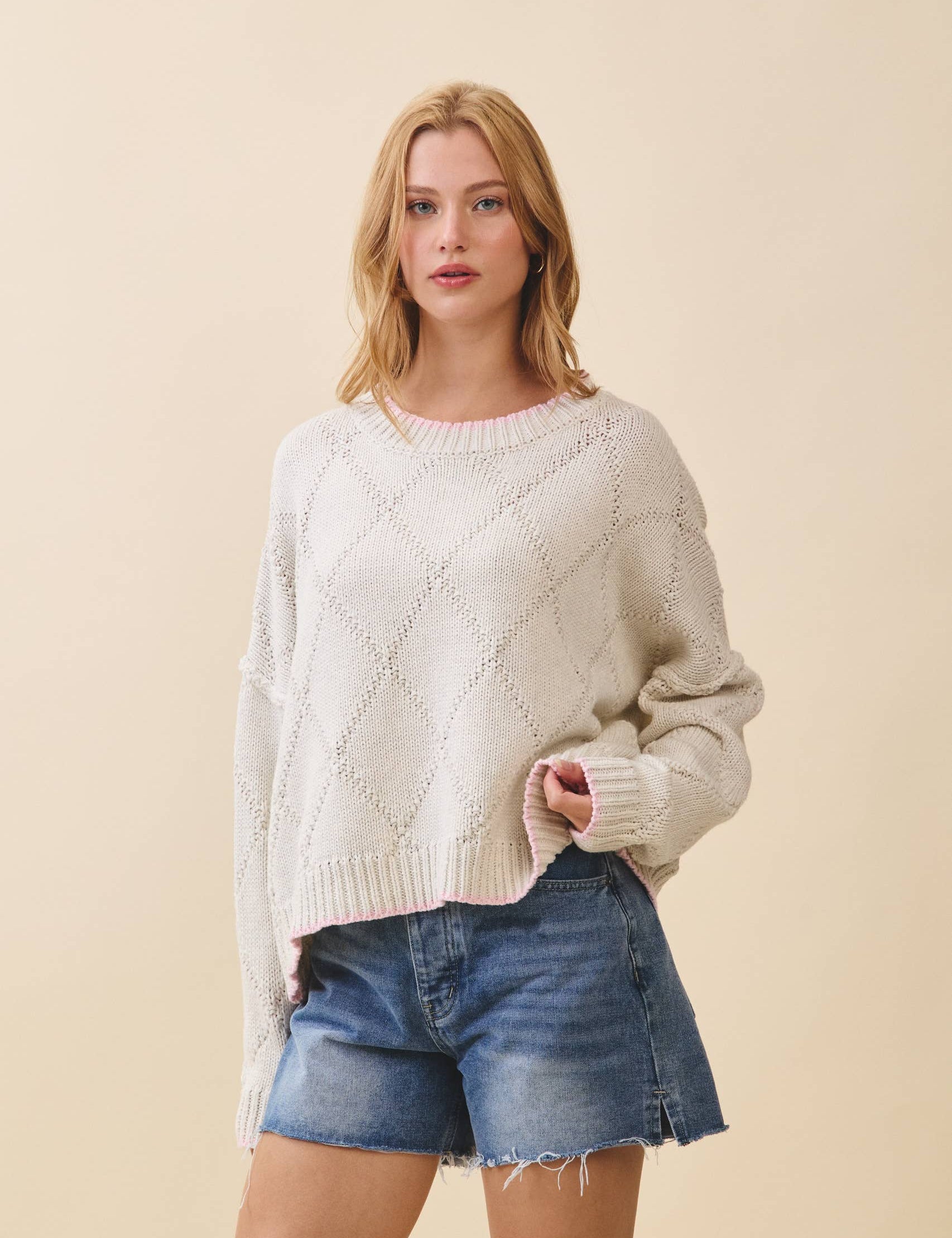 Cream Drop Shoulder Cozy Sweater