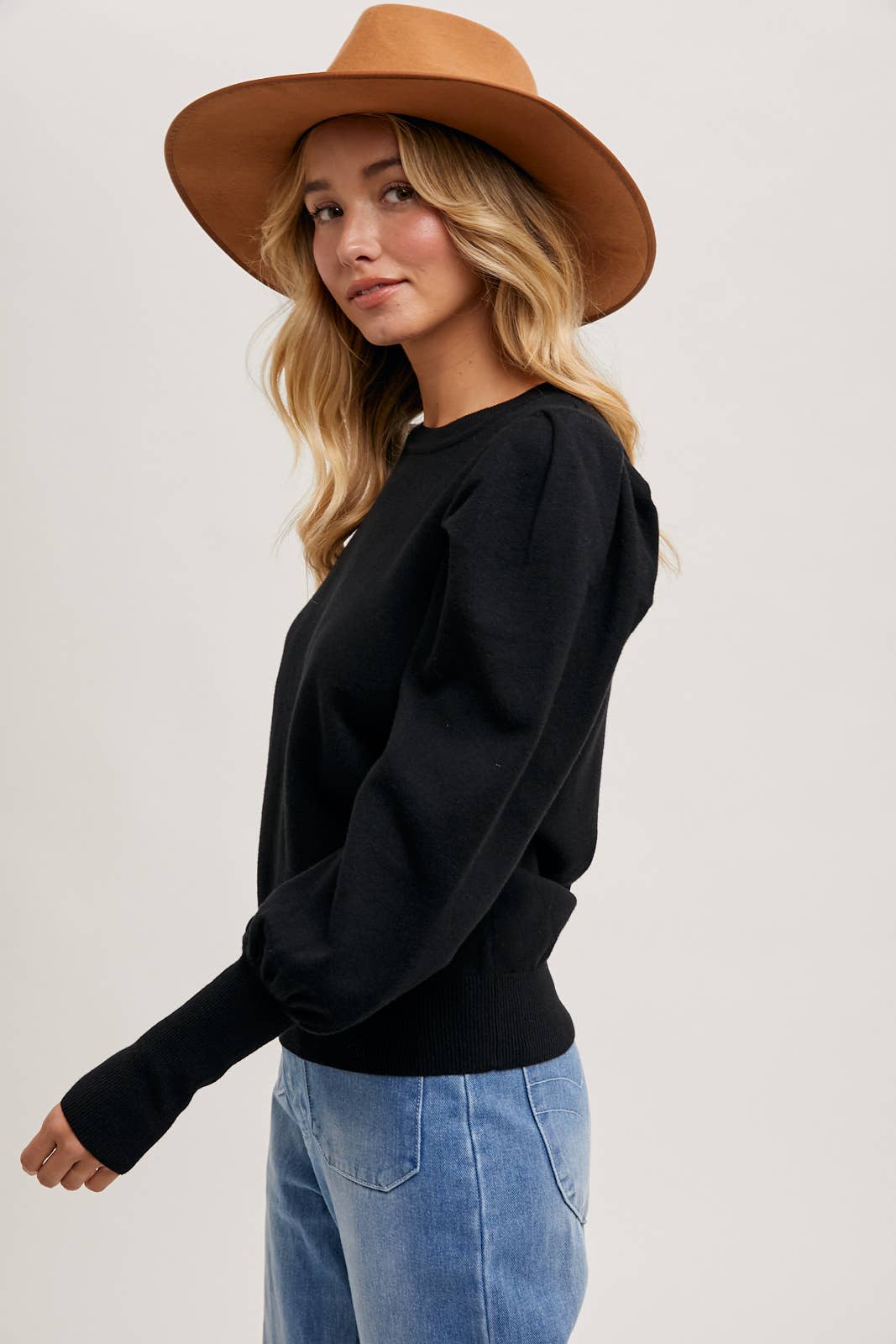 The bubble-sleeved sweater knit top is a cozy yet stylish addition to your wardrobe. With its unique design featuring voluminous bubble sleeves, this top adds a touch of drama and flair to any outfit. Crafted from soft and warm sweater knit fabric, it offers both comfort and chicness. The bubble sleeves create a statement silhouette, drawing attention to the arms and shoulders. Its versatile style allows it to be dressed up or down, making it suitable for various occasions. Pair it with high-waisted jeans for a casual daytime look or with a skirt and heels for a more polished ensemble. Whether you're running errands or meeting friends for brunch, this sweater knit top is sure to keep you looking trendy and feeling comfortable.
