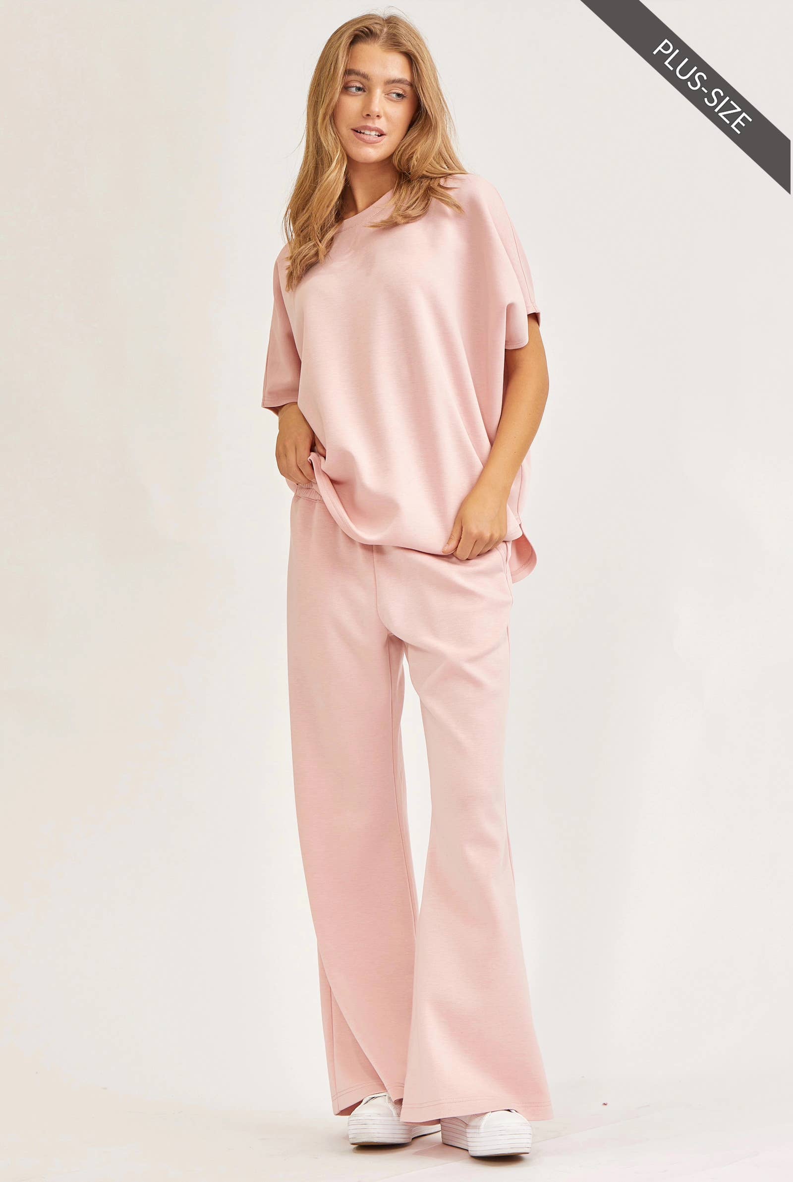 Curvy Blush Poncho Top + Bell Bottom Modal Set