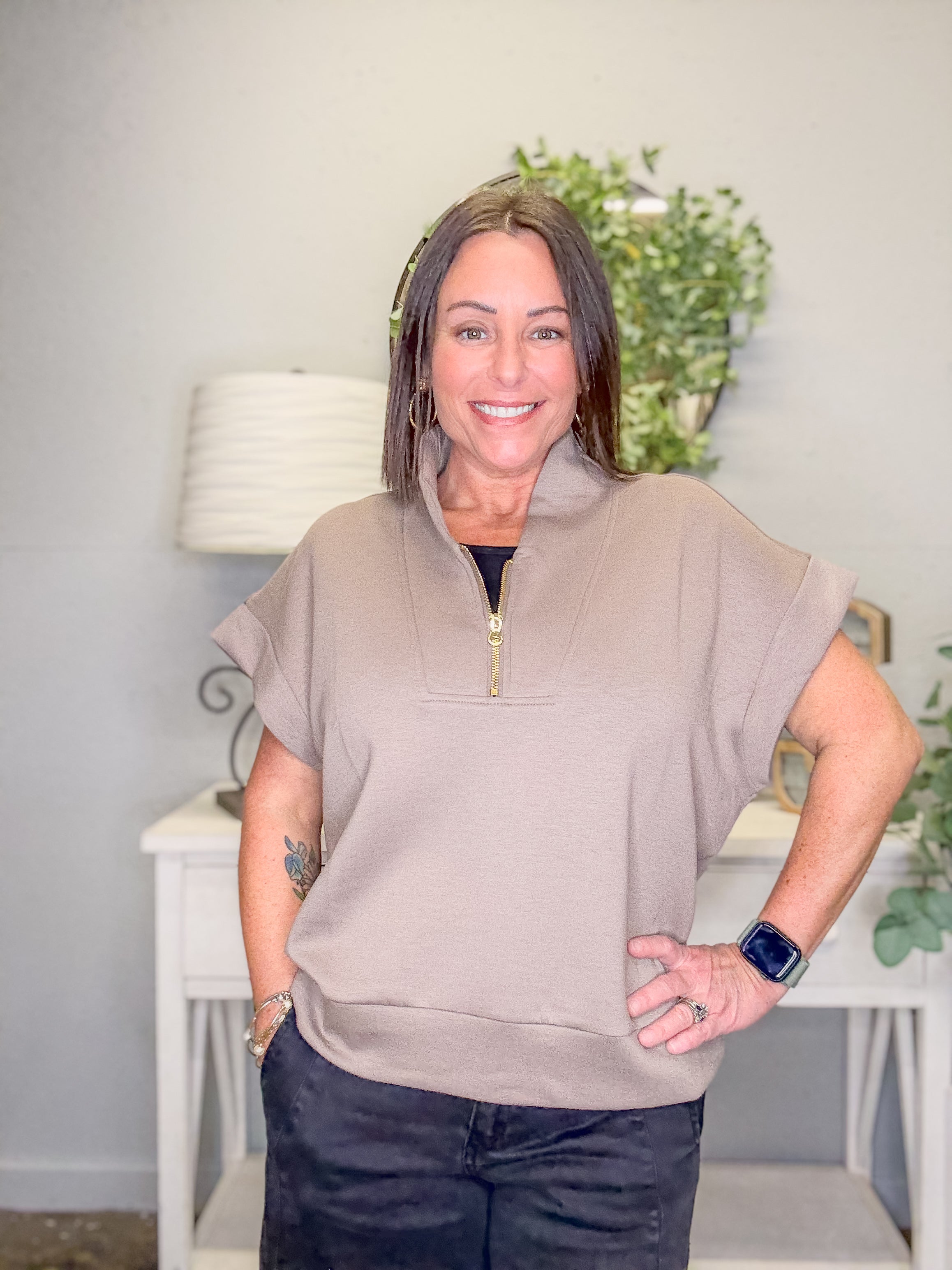 Scuba High Neck Half Zip Vest – Cocoa (Curvy)
