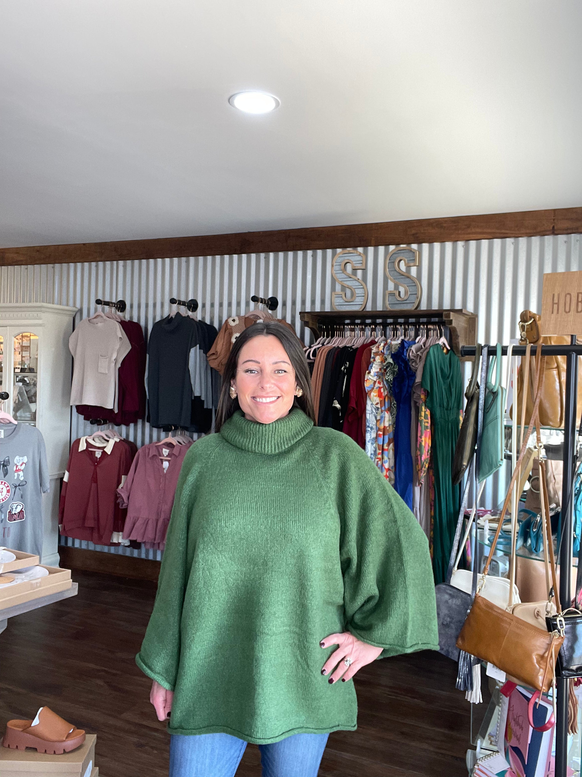 Solid 3/4 Dolman Sleeves Turtleneck Pullover