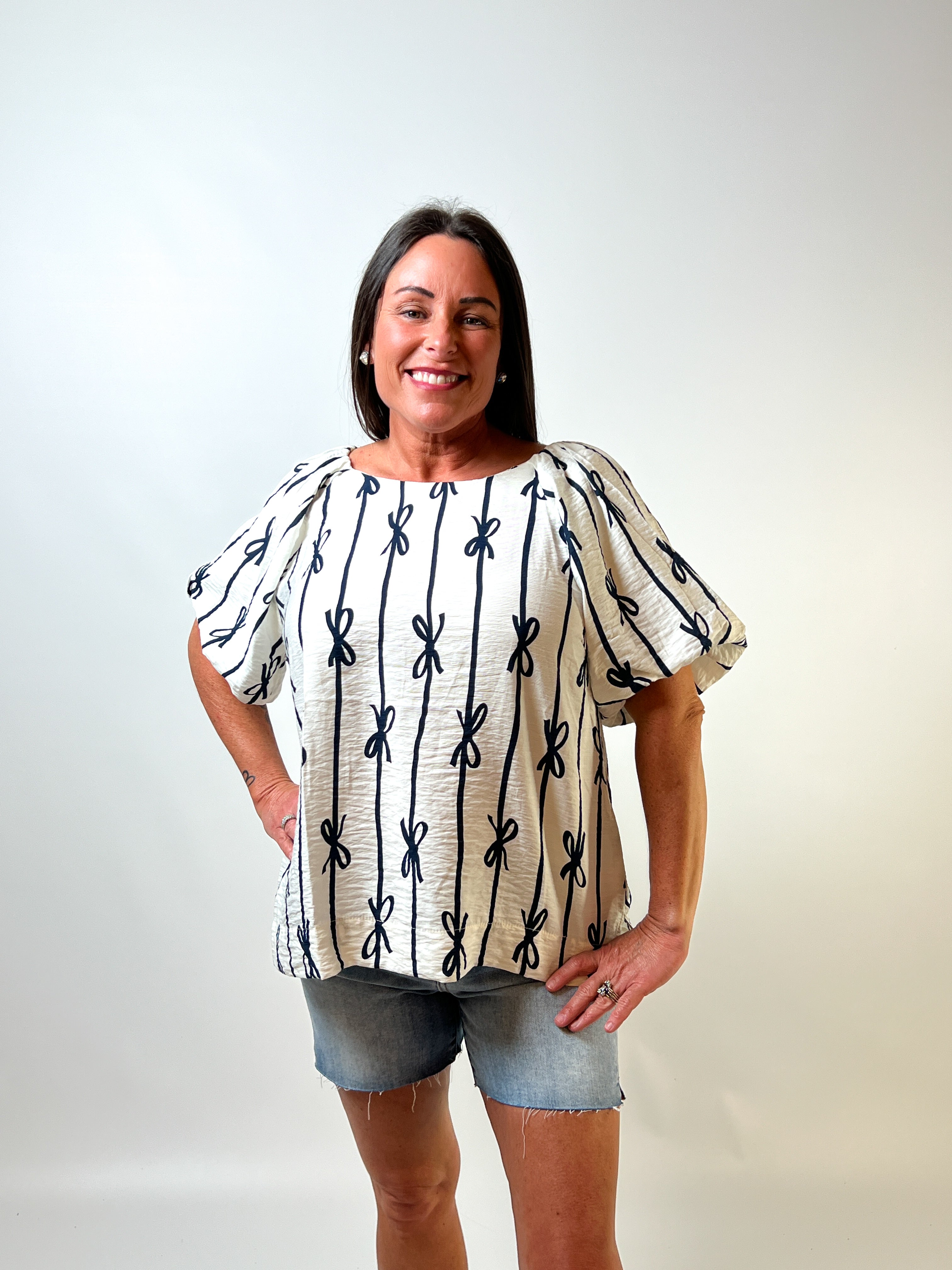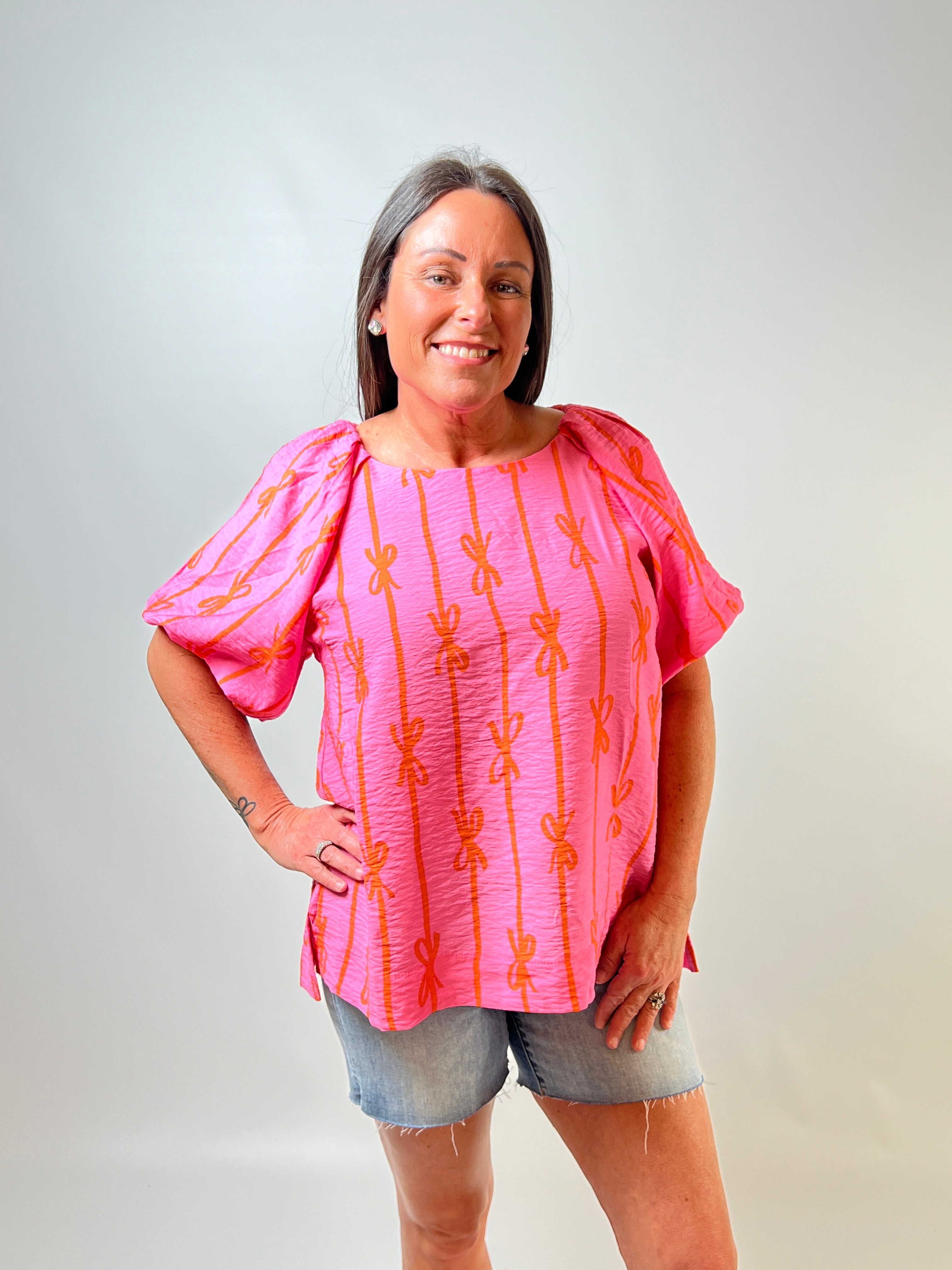 Elevate your style game with Whimsy Ribbons Puff Sleeve Top! This trendy umgee top features cute bows, available in cream and pink, and puff sleeves that make a statement. Perfect for any occasion, in sizes small-large. Add a touch of whimsy to your wardrobe!