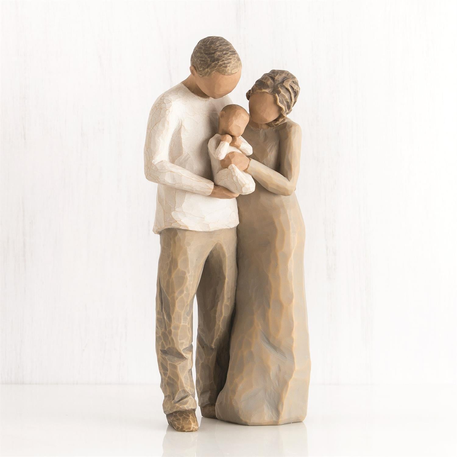 A gift to celebrate new beginnings, new babies, new families… and the loving relationships that develop between parent and child, grandparent and child…This figure has darker skin and hair coloring. Willow Tree is a reminder of someone we want to keep close, or a memory we want to touch. Hand-carved figures reveal their expression through body gestures only… a tilt of the head, placement of the hands, a turn of the body. Each piece is designed to be open to interpretation from the viewer. “Willow Tree isn’t so much about the tangible piece. It represents an emotion, or it marks a memory.” —Susan Lordi. A gift of Willow Tree® communicates beyond words.