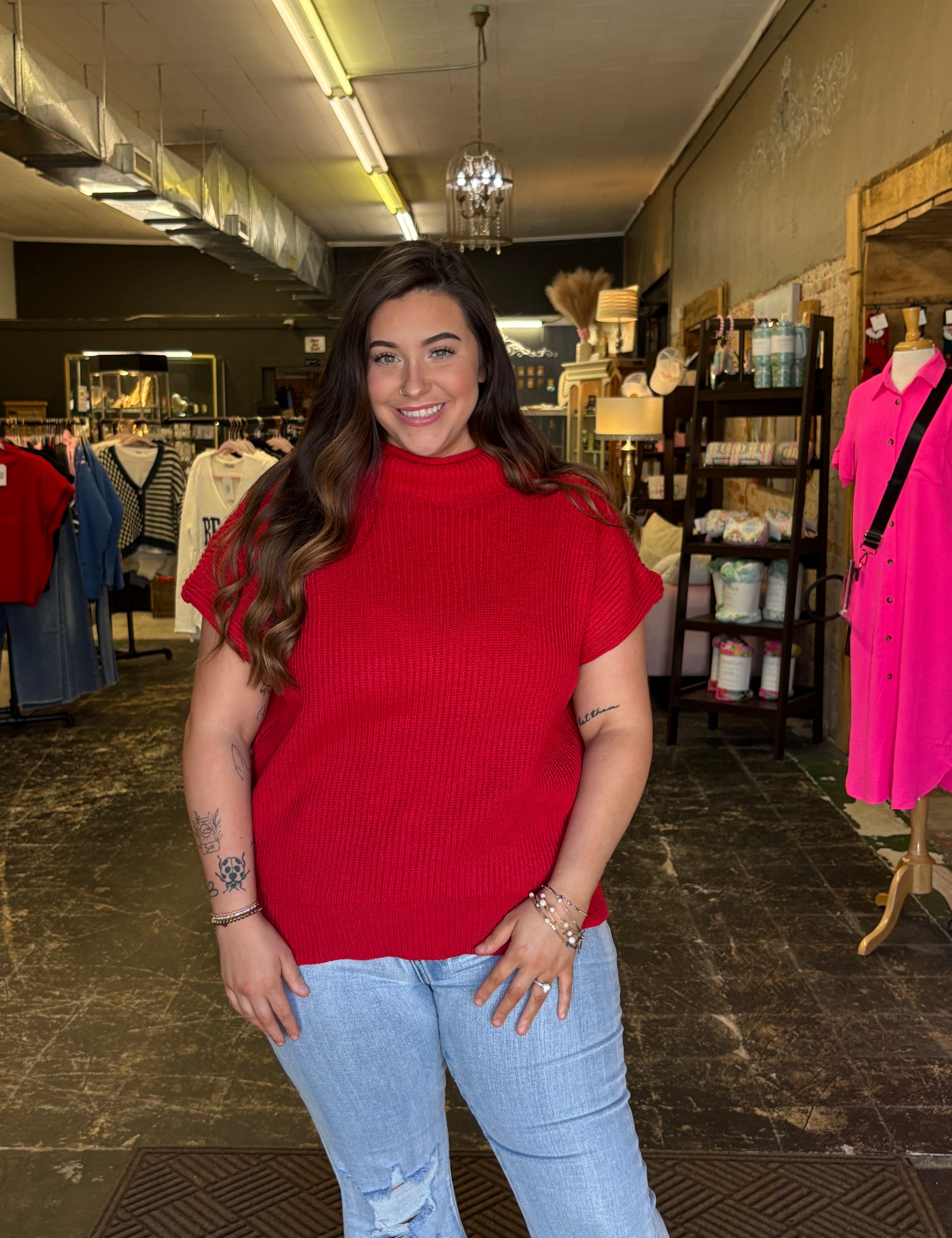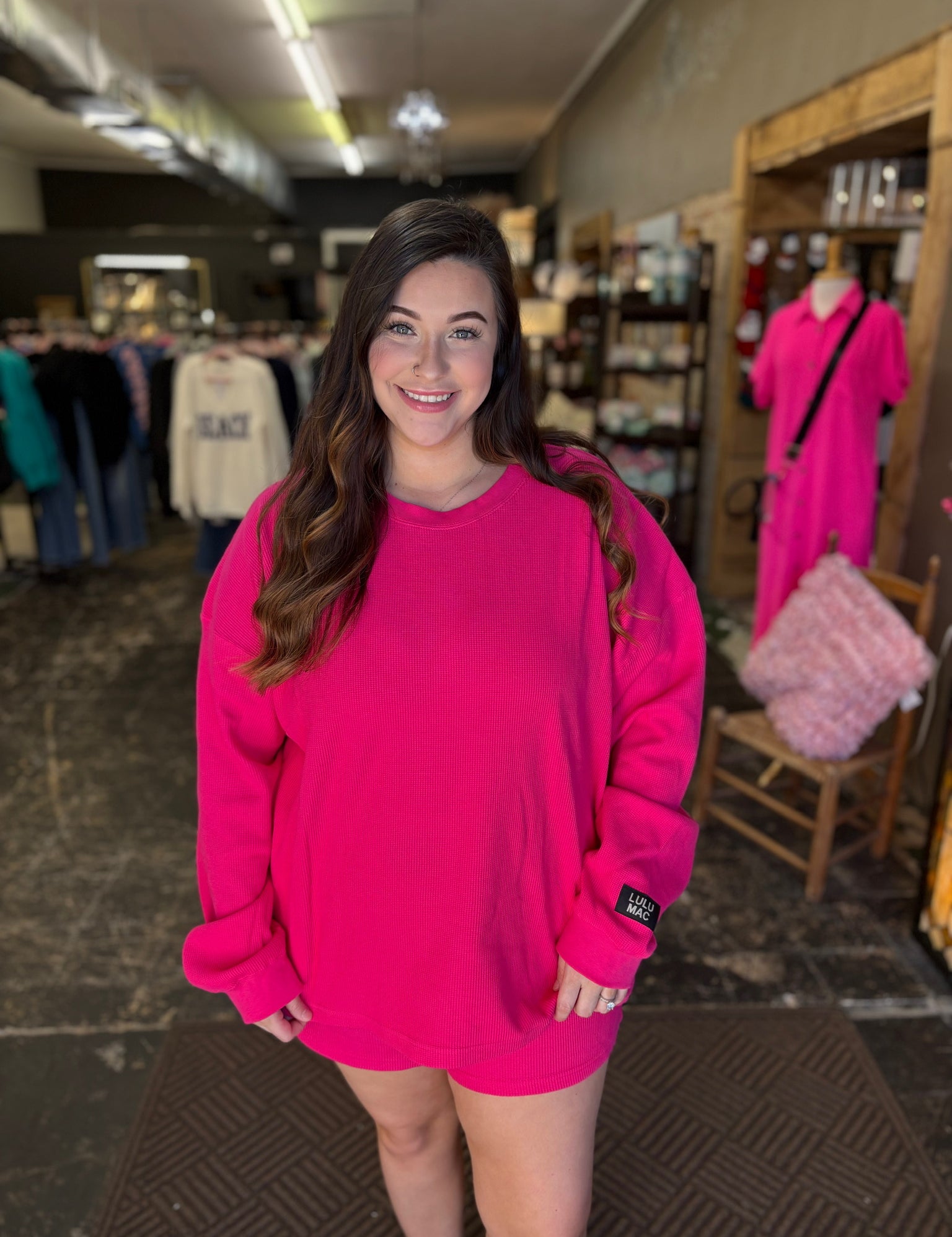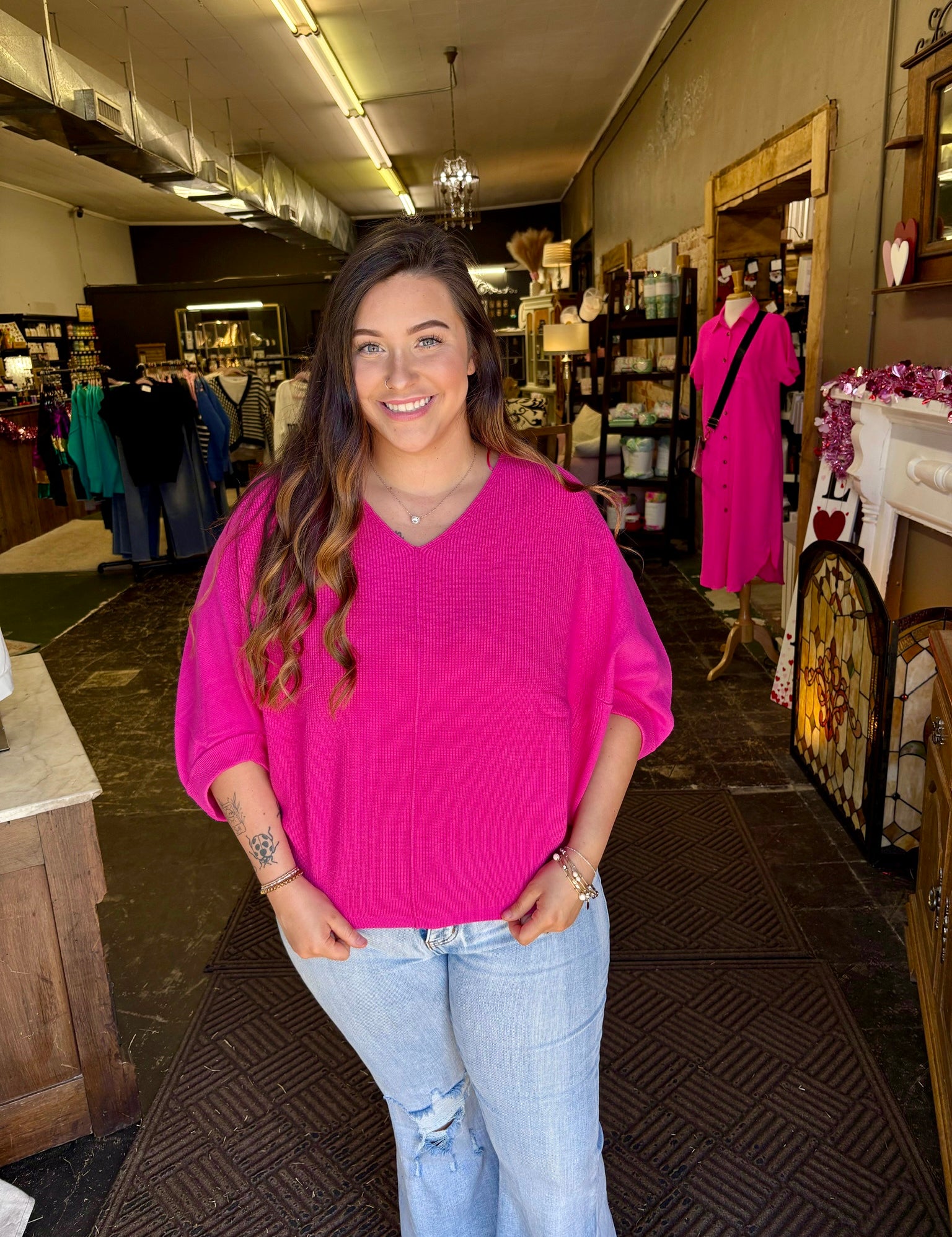 Hot Pink Chenille Waffle Cap Sleeve Sweater (Curvy)