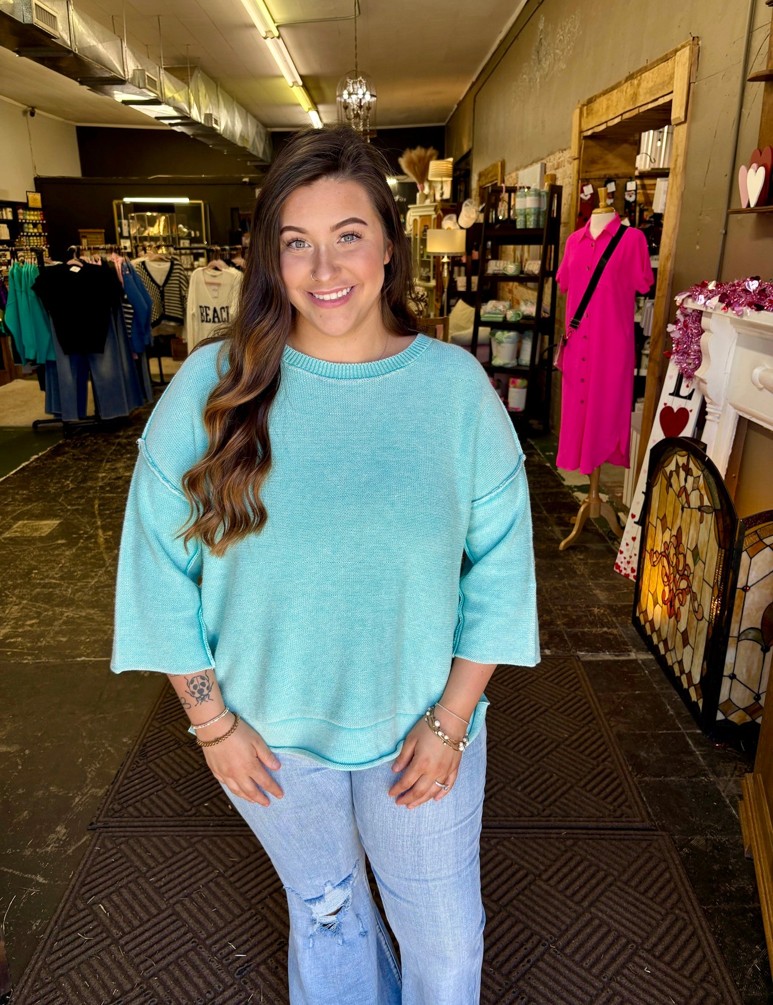 Wide Neckband Drop Shoulder Sweater – Turquoise