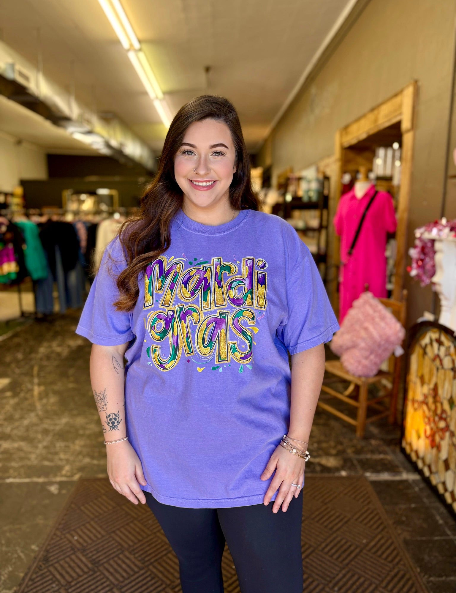 Paint Stroke Mardi Gras Graphic Tee Violet
