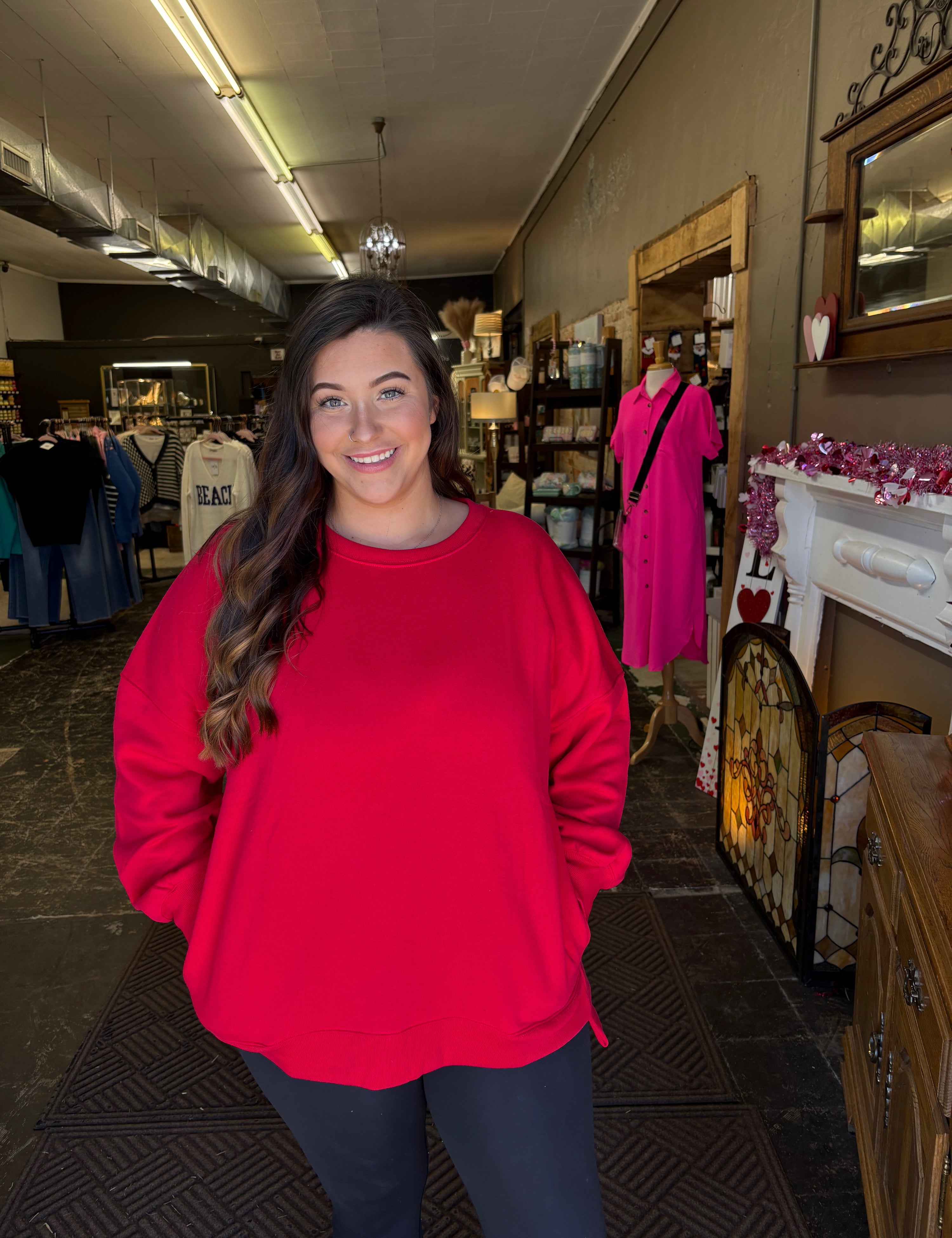 Plus Fleece Hi-Low Boyfriend Sweatshirt with Pockets- Red