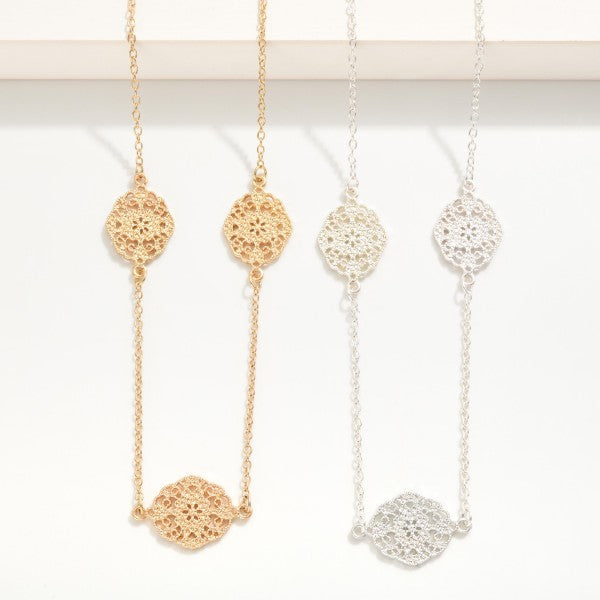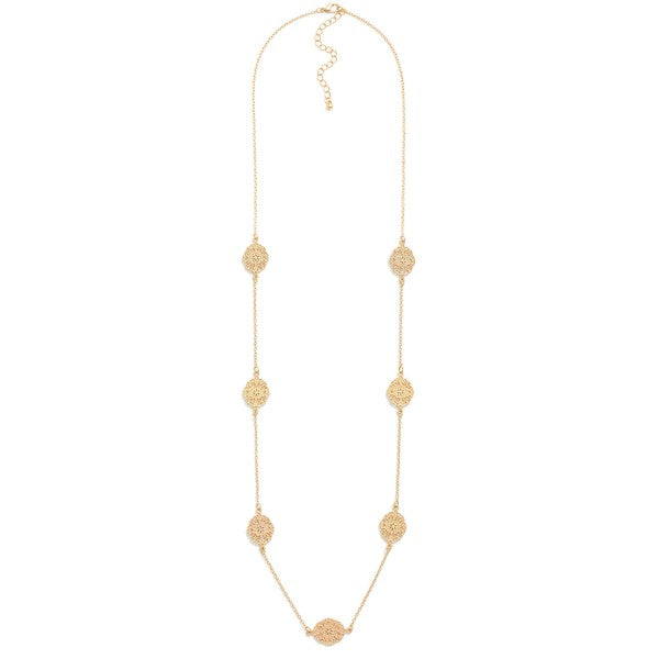 Long Chain Link Necklace Featuring Metal Filigree Stations