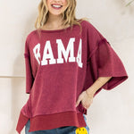 Rock the laid back Bama Vibes look with this stylish oversized knit pullover. Crafted with washed terry, it features a boat neckline and letter printed design for a casual, modern edge. Relaxed and comfortable, it's perfect for everyday wear. Available in Washed Burgundy and Washed Black.